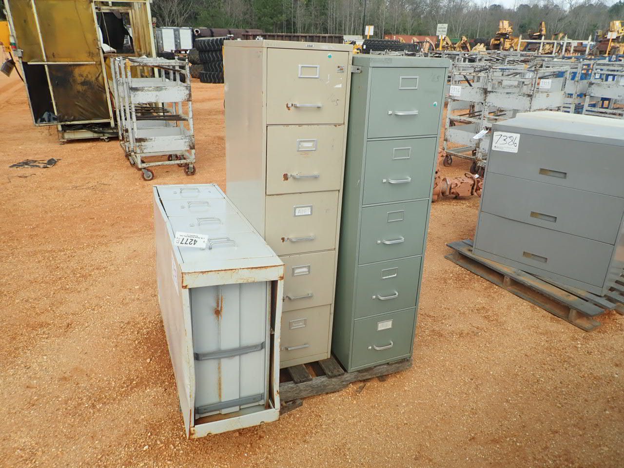 7387 1 pallet (2) 5 drawer filing cabinets, (1) 4 drawer filing cabinet