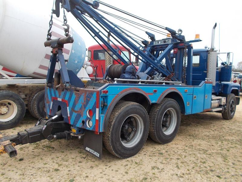 1980 MACK RS686LS T/A WRECKER, S/N RS686LS52812, MACK DIESEL ENG, MAXTORQUE EXTENDED RANGE 6 SPD TRANS, ENGINE BRAKE, HOLMES 750 WINCH BODY, TOOL BOXES, ODOMETER READING 130,672 MILES