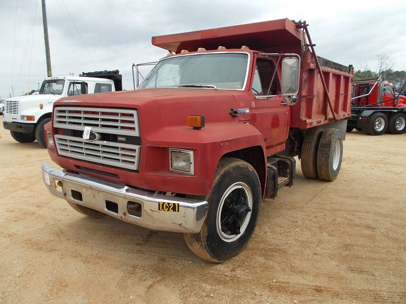 1981 FORD 700 S/A DUMP, S/N 1FDXK74N3BVJ43255, FORD DIESEL ENG, 5 SPD 2 SPD TRANS, 10' STEEL DUMP BODY, 11R22.5 TIRES, SPOKE WHEELS, ODOMETER READING 22,224 MILES