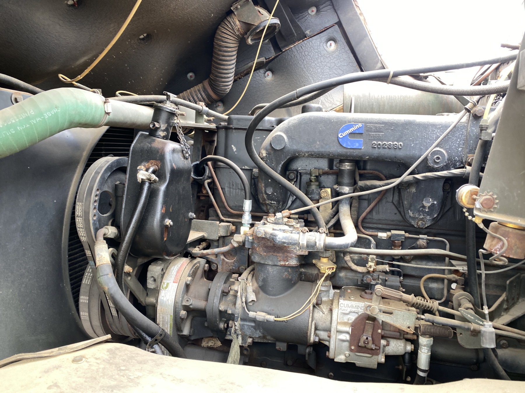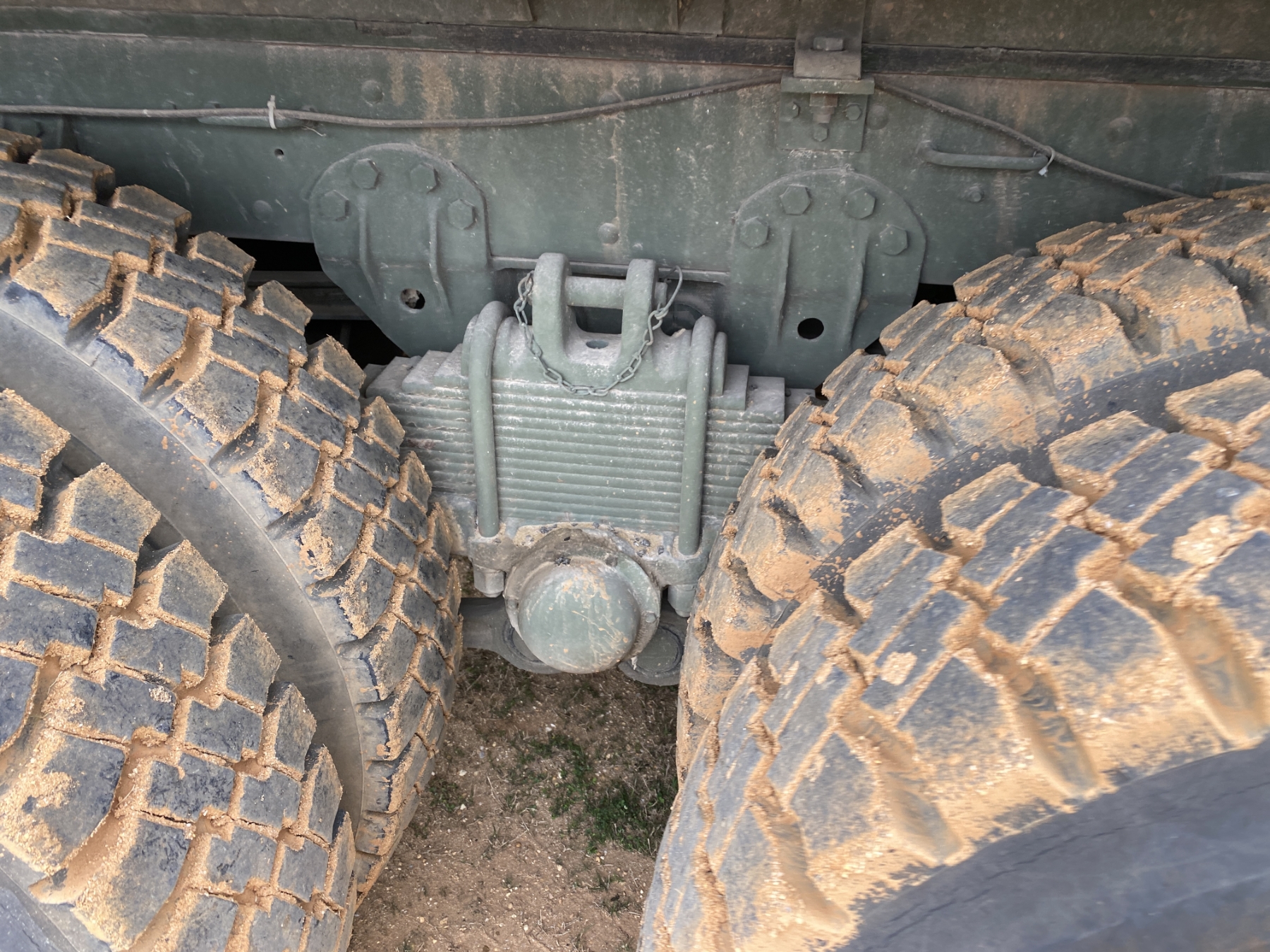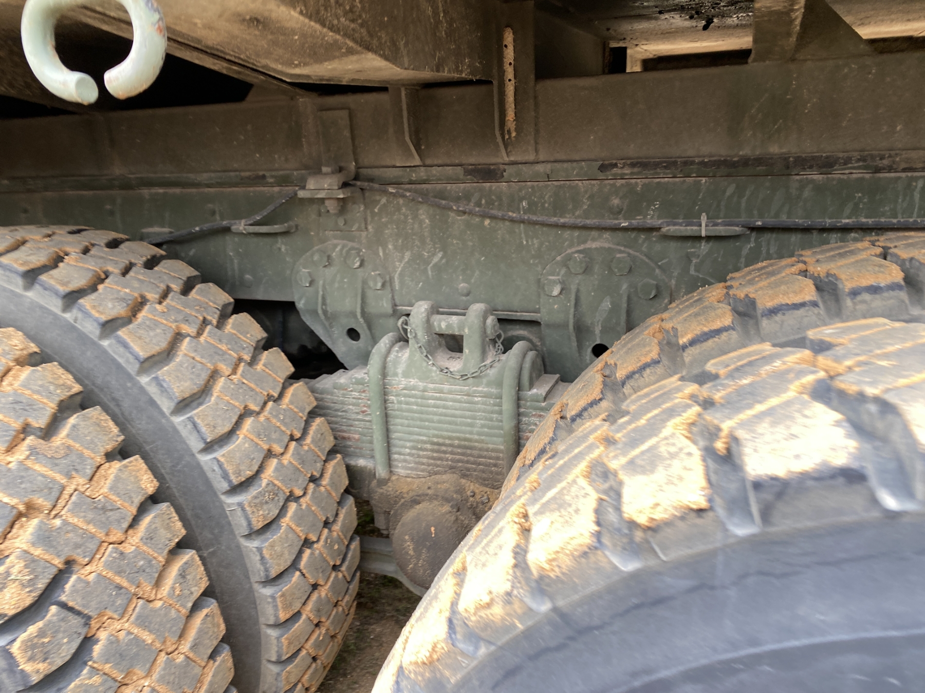 T/A, 5 Ton, 6x6, Cummins NHC250 engine, A/T, 14' flatbed, Warren E/AC-2420A spreader, winch, 11.00R20 tires