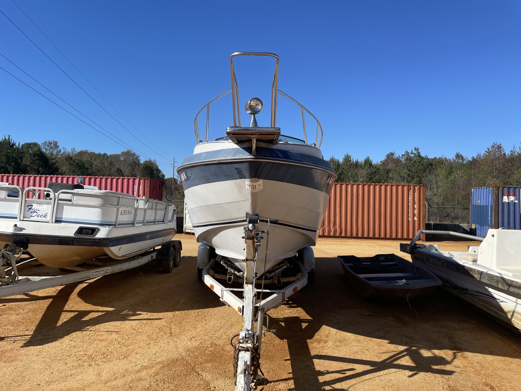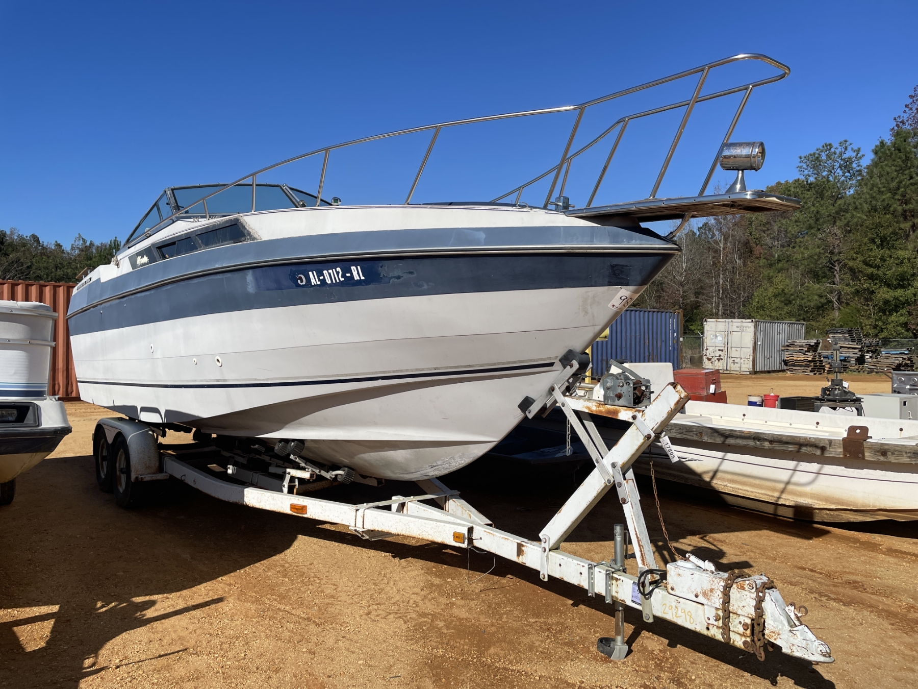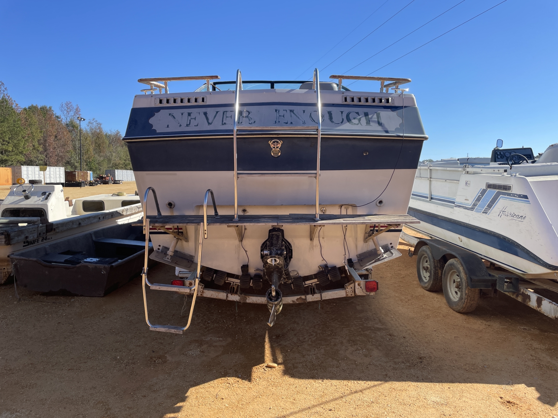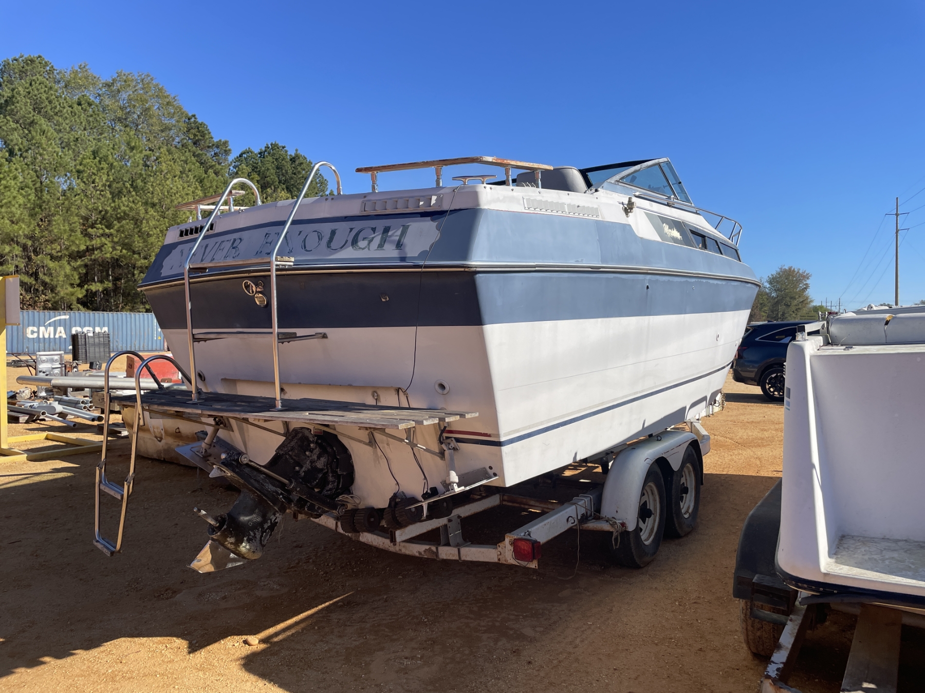 INBOARD OUTBOARD MOTOR CABIN CRUISER ON T/A TRAILOR