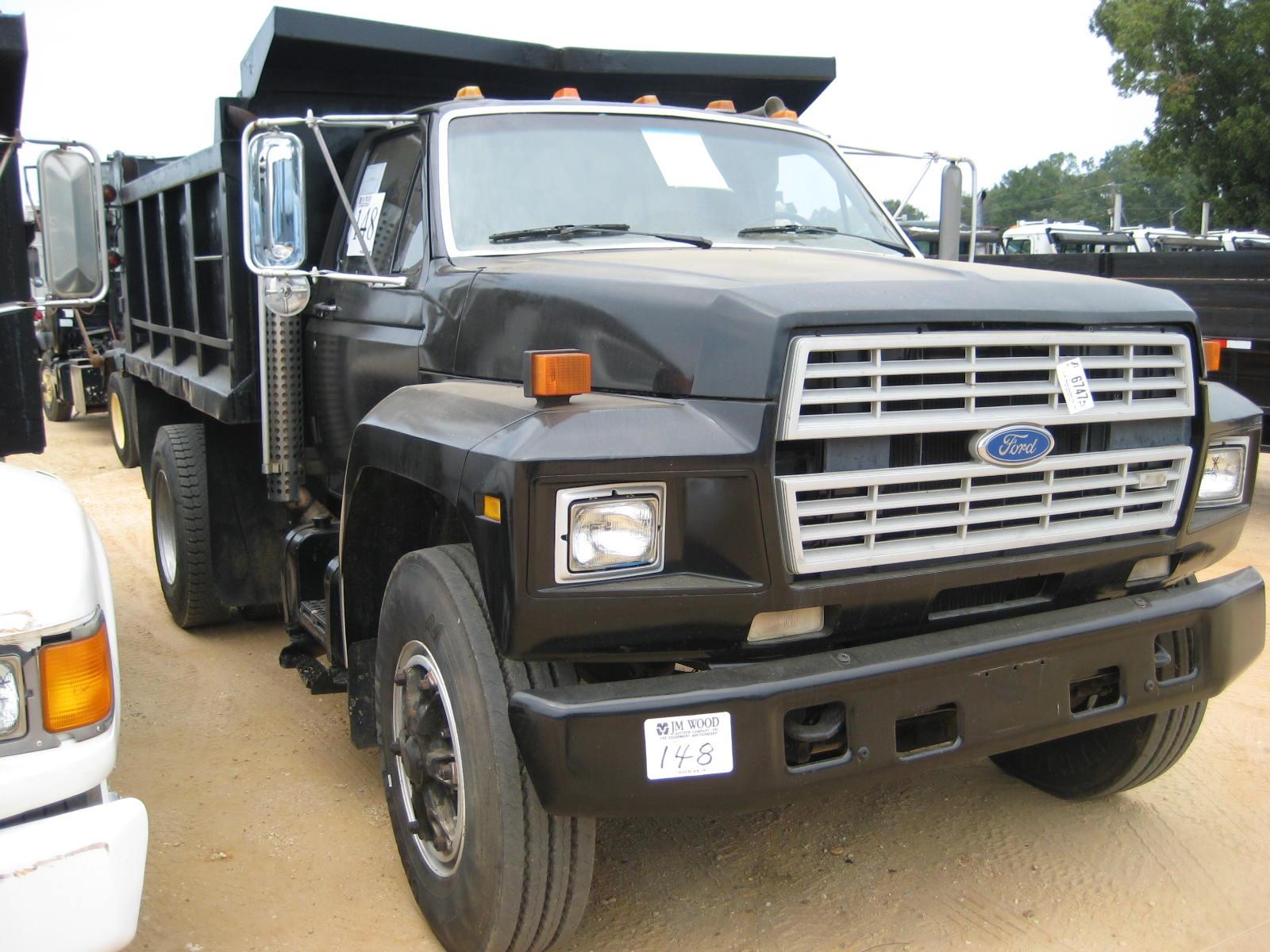 1985 FORD F800 S/A DUMP, S/N A30127 3208 CAT, 5-2 SPD TRANS, 29,000 GVW, AIR BRAKES, 10' STEEL DUMP, P/S, 11R22.5 TIRES