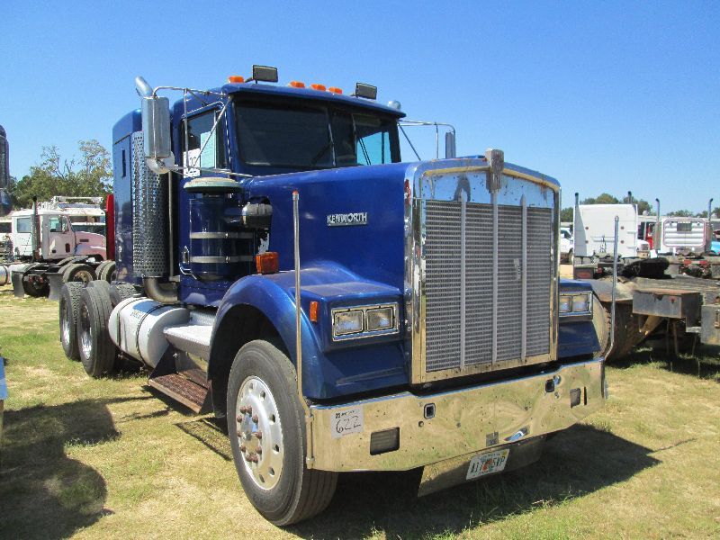 1985 KENWORTH W900 T/A TRUCK TRACTOR, S/N 2XKWDB9X3FM323159, 3406 B CAT DIESEL ENG, 13 SPD TRANS, 44K REARS, 12K FRONT, A/C, P/S, ENG BRAKE, WET KIT, 11R24.5 TIRES, STEEL DISC WHEELS
