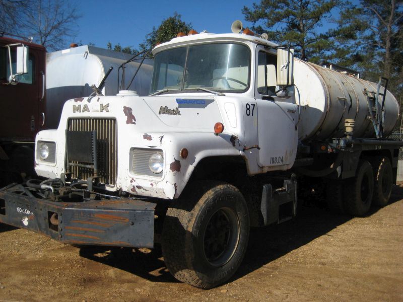 1985 MACK DM685S T/A WATER TRUCK, S/N 1M2B120C9FA056786, MACK DIESEL ENG, 5 SPD 2 SPD TRANS, 2,000 GAL WATER TANK W/REAR AND INTERMEDIATE DISCHARGE, ODOMETER READING 127,118 MILES