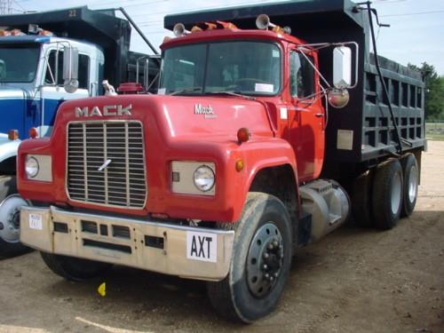 1985 MACK R688ST T/A DUMP, S/N A011091 E6 350 MACK ENG, 9 SPD TRANS, A/C, P/S, 13-15 YD BODY, TARP, AIR TAILGATE, DISC WHEELS 11R24.5 TIRES