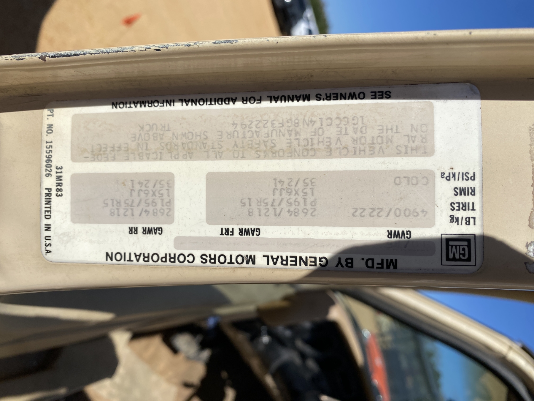 Vehicle ID Number: 1GCCC14N8GF322294