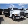 1987 FORD F600 S/A FLATBED DUMP, S/N A37422 GAS, 5 SPD, 12' STEEL FLATBED BODY W/SIDES 11R22.5 TIRES