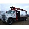 1987 FORD L8000 T/A W/21' FLATBED, S/N A36471, FORD DIESEL ENG, 13 SPD TRANS HENDRICKSON SUSPENSION, P/S, A/C, CAST SPOKE WHEELS, DIFFERENTIAL LOCK, US TRUCK CRANE