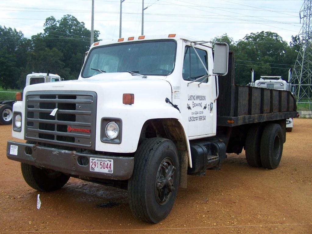 1988 INTERNATIONAL 1954 S/A FLATBED DUMP, S/N H593748, INT DIESEL ENG, 5 SPD TRANS, P/S 15' FLAT DUMP W/2' SIDES, SPOKE WHEELS