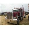 1988 PETERBILT 379 T/A TRUCK TRACTOR, S/N 1XP5DB9X8JN254466, 425 HP CAT DIESEL ENG, 13 SPD TRANS, 38K REARS, 12K FRONT, ENGINE BRAKE, A/C, P/S, SLEEPER CAB, 11R24.5 TIRES, DISC WHEELS