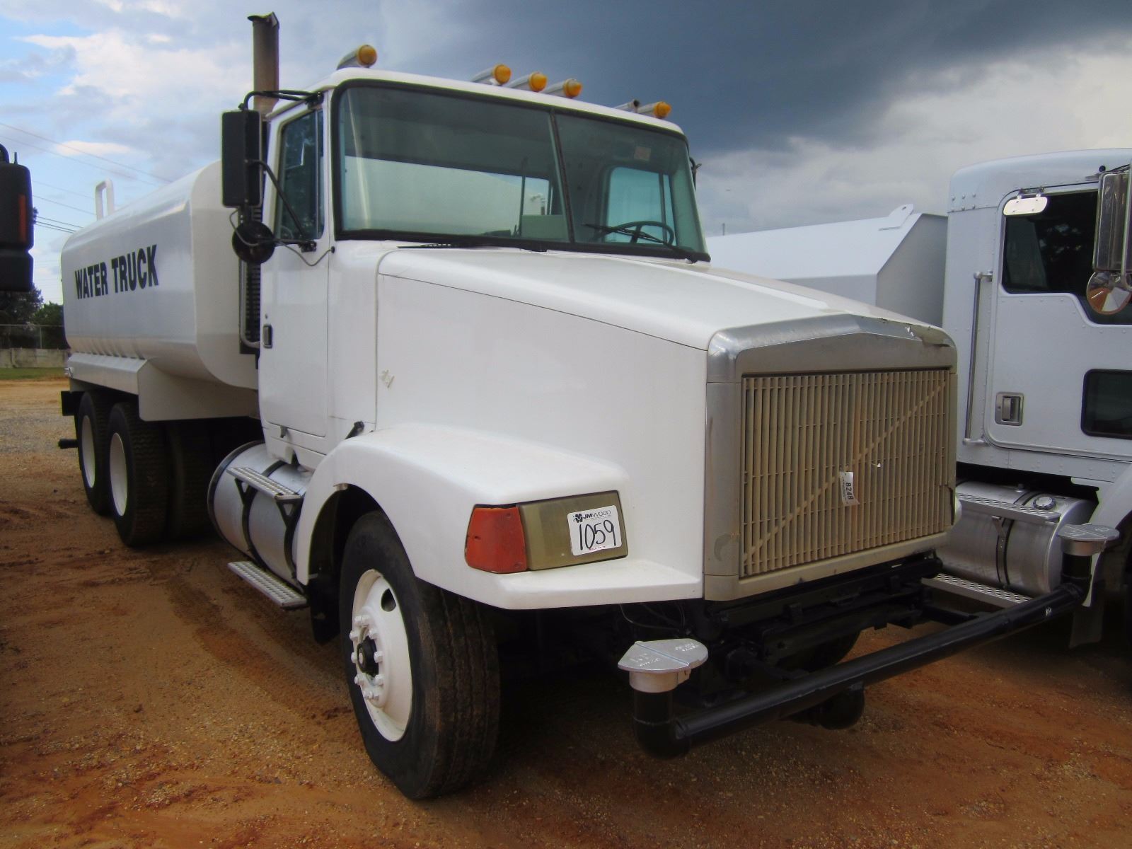 1988 VOLVO WATER TRUCK, VIN/SN:1WUVDCME6JN128421 - T/A, CUMMINS DIESEL ENG, 10 SPD TRANS, DOUBLED TANK CO WATER TANK W/REAR & FRONT DISCHARGE, 11R24.5 TIRES, ODOMETER READING 972,525 MILES