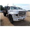 1989 FORD F600 S/A DUMP, S/N 1EDNF60KXKVA58000, FORD GAS ENG, 5 SPD TRANS, 14' FLATBED DUMP W/ 1' SIDES, ODOMETER READING 105,303 MILES