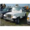 1989 JEEP WRANGLER 4X4, S/N J161598 6 CYL GAS, 5 SPD, P/S, A/C