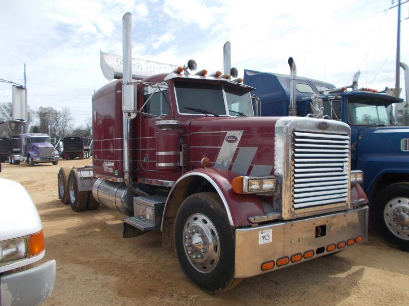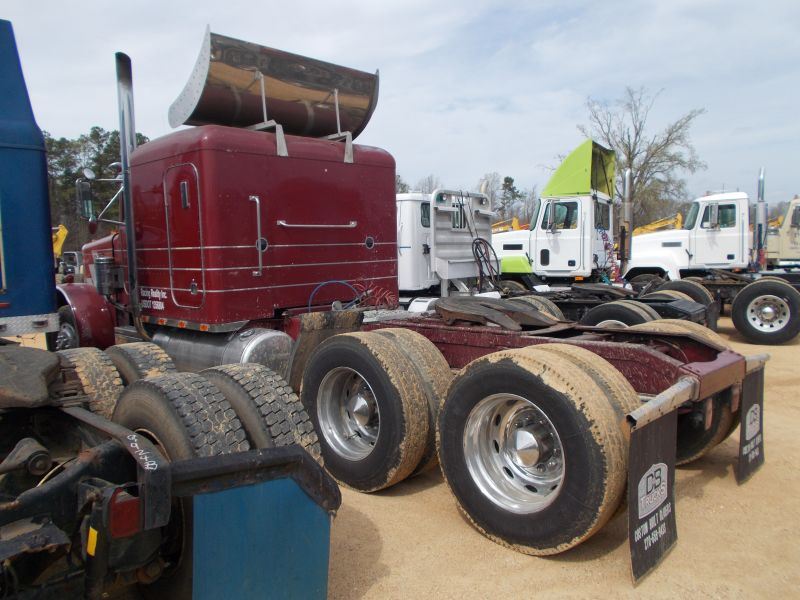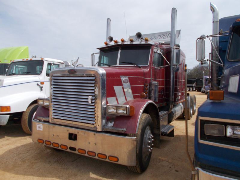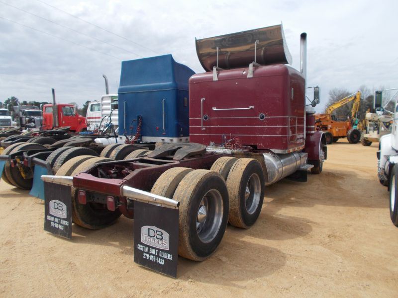 1989 PETERBILT 379 T/A TRUCK TRACTOR, S/N 1XP5DB9XXKN280147, CAT DIESEL ENG, 13 SPD TRANS, 38K REARS, 12K FRONT, ENGINE BRAKE, SLEEPER, 11R24.5 TIRES ON ALUM DISC WHEELS, ODOMETER READING 523,511 MILES