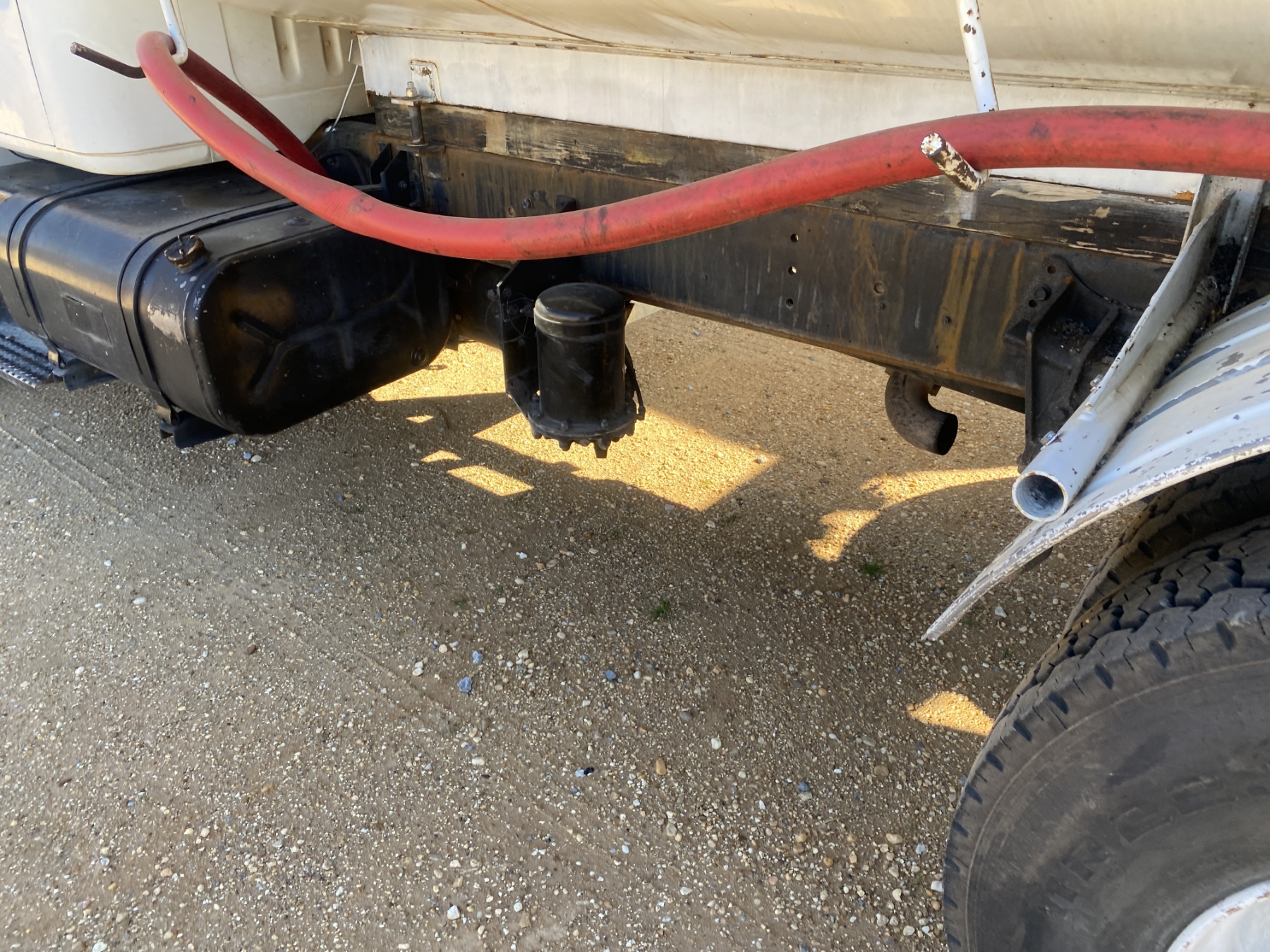 S/A, International diesel engine, 7 speed trans, 2,000 Wilco tank, front & rear discharge