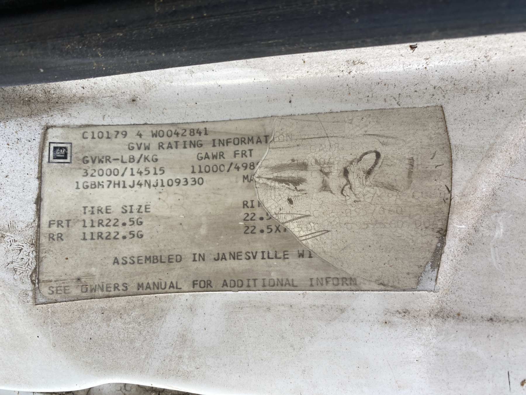 Vehicle ID Number: 1GBM7H1J4NJ109330