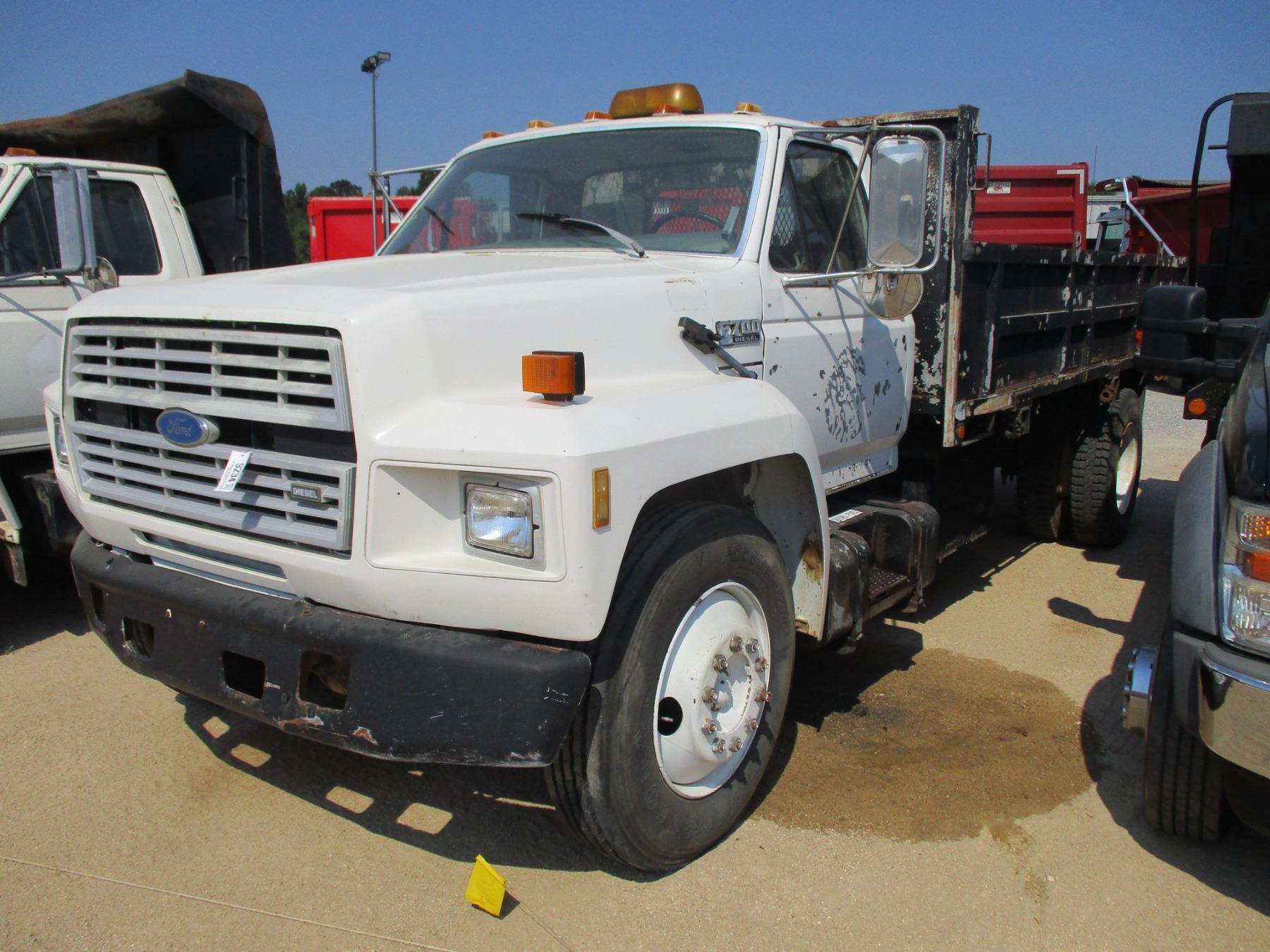 1993 FORD DUMP, VIN/SN:1FDNK74C3PVA17896 S/A, FORD DIESEL ENGINE, 5-2 SPEED TRANS, 24,500 GVW, 14' FLATBED DUMP W/2' SIDES, 11R22.5 TIRES, ODOMETER READING 152,659 MILES