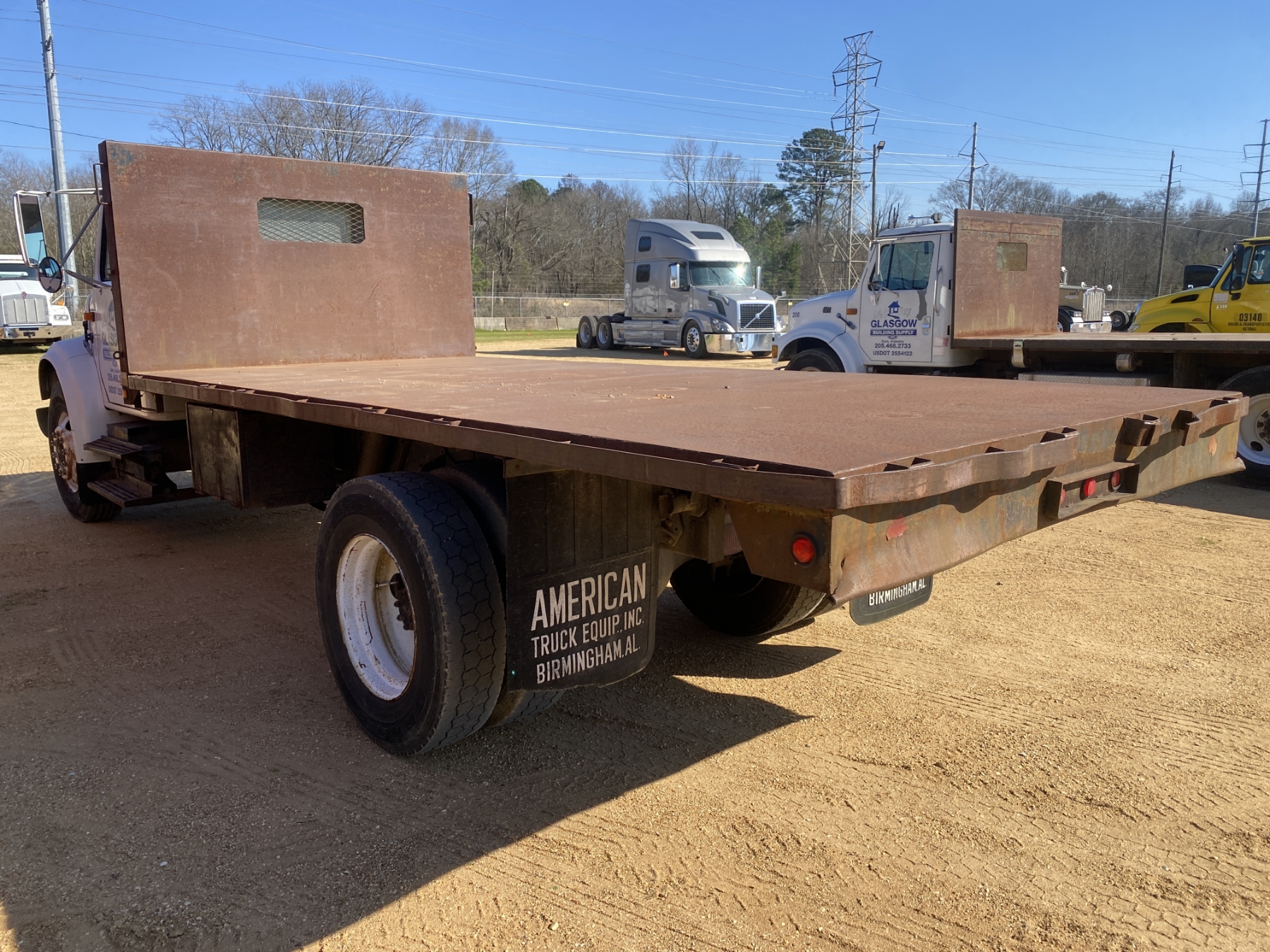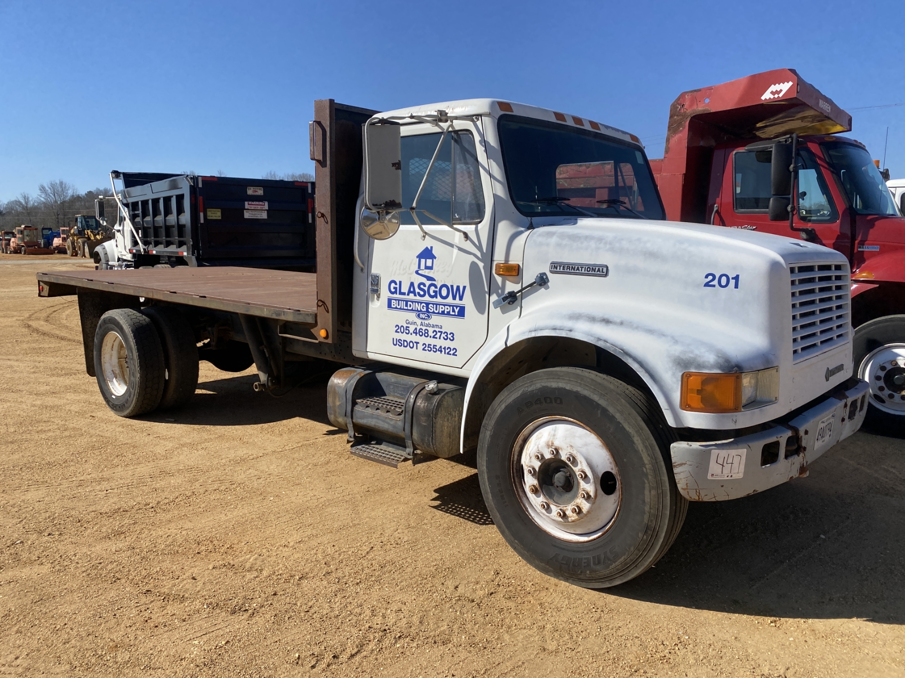 S/A, International engine, 7 speed trans, 16' flatbed dump, 275/80R22.5 tires
