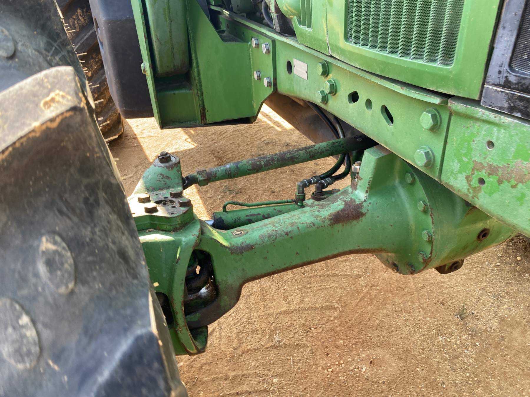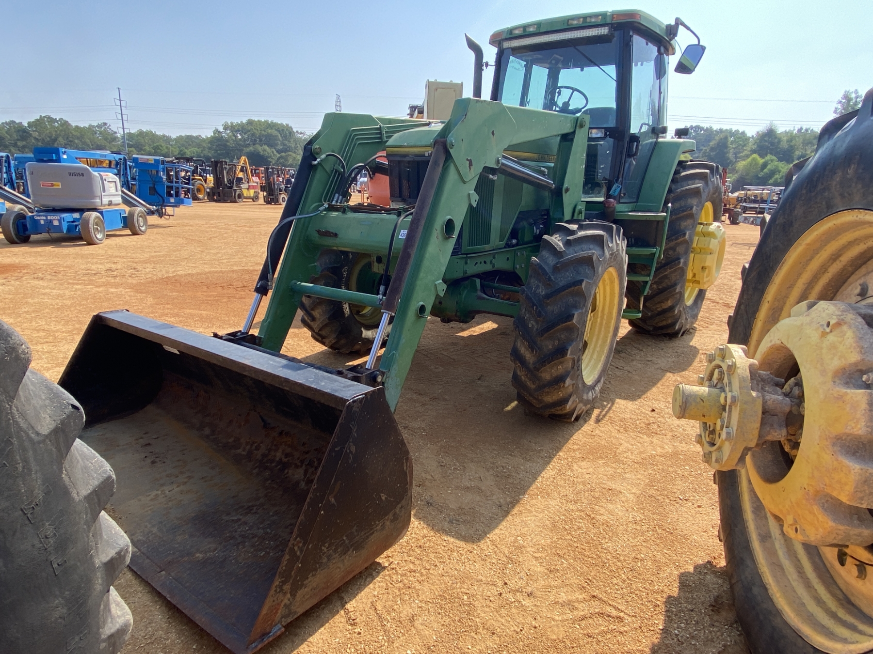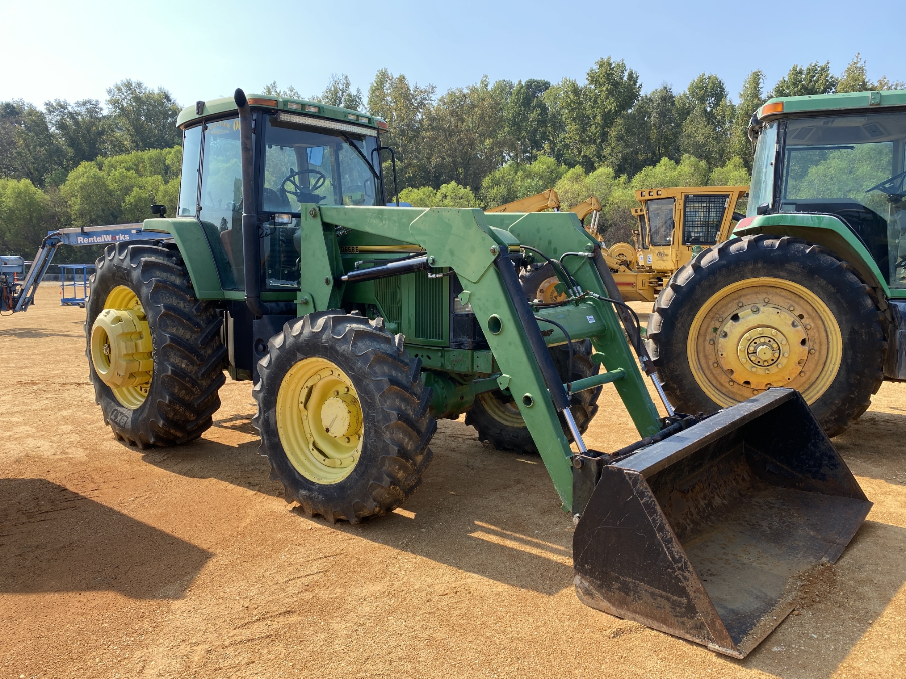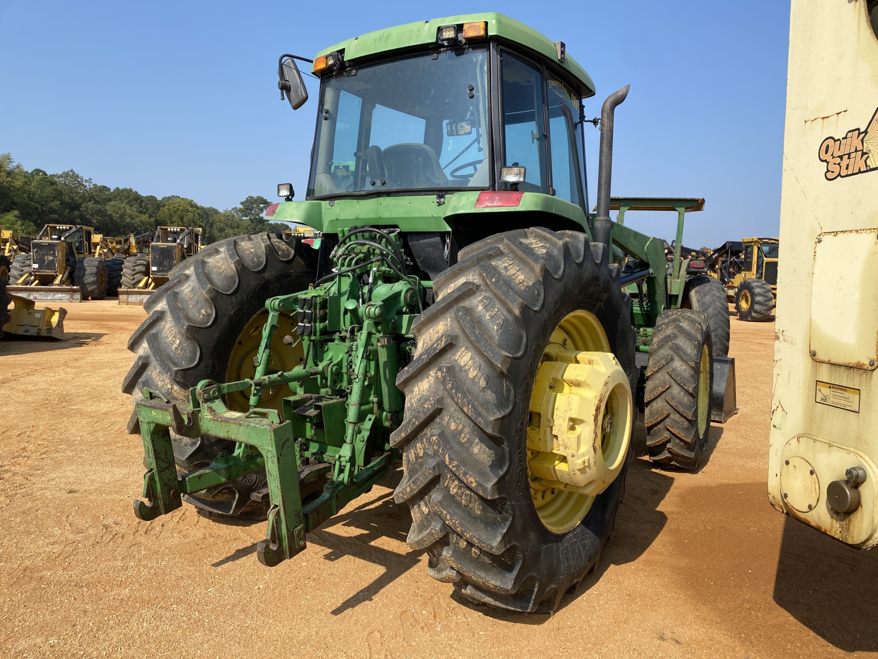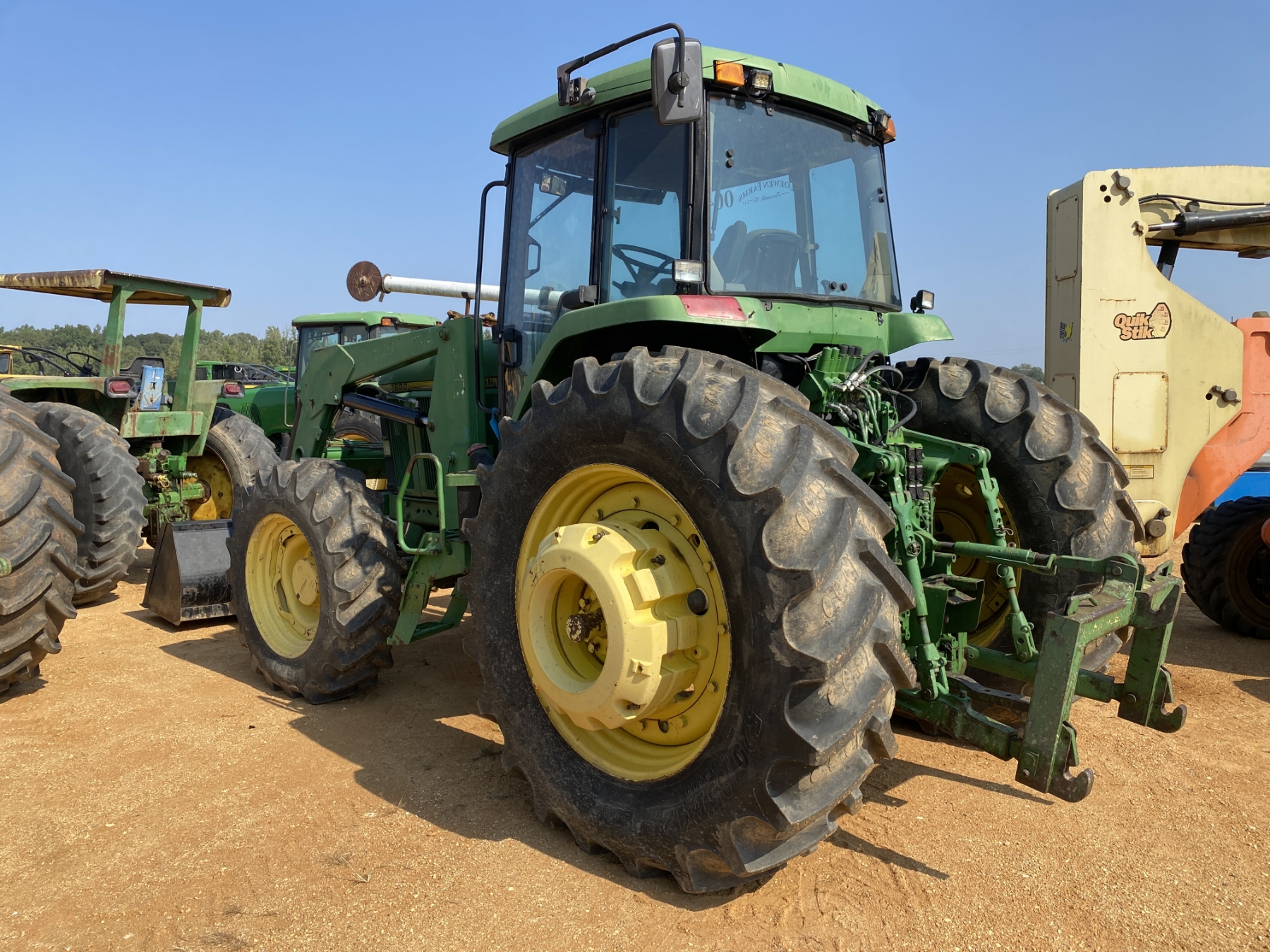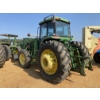 MFWD, (3) remotes, quick hitch, John Deere 7400 front loader attach, bucket, 20.8-42 rear tires, 14.9-30 front tires