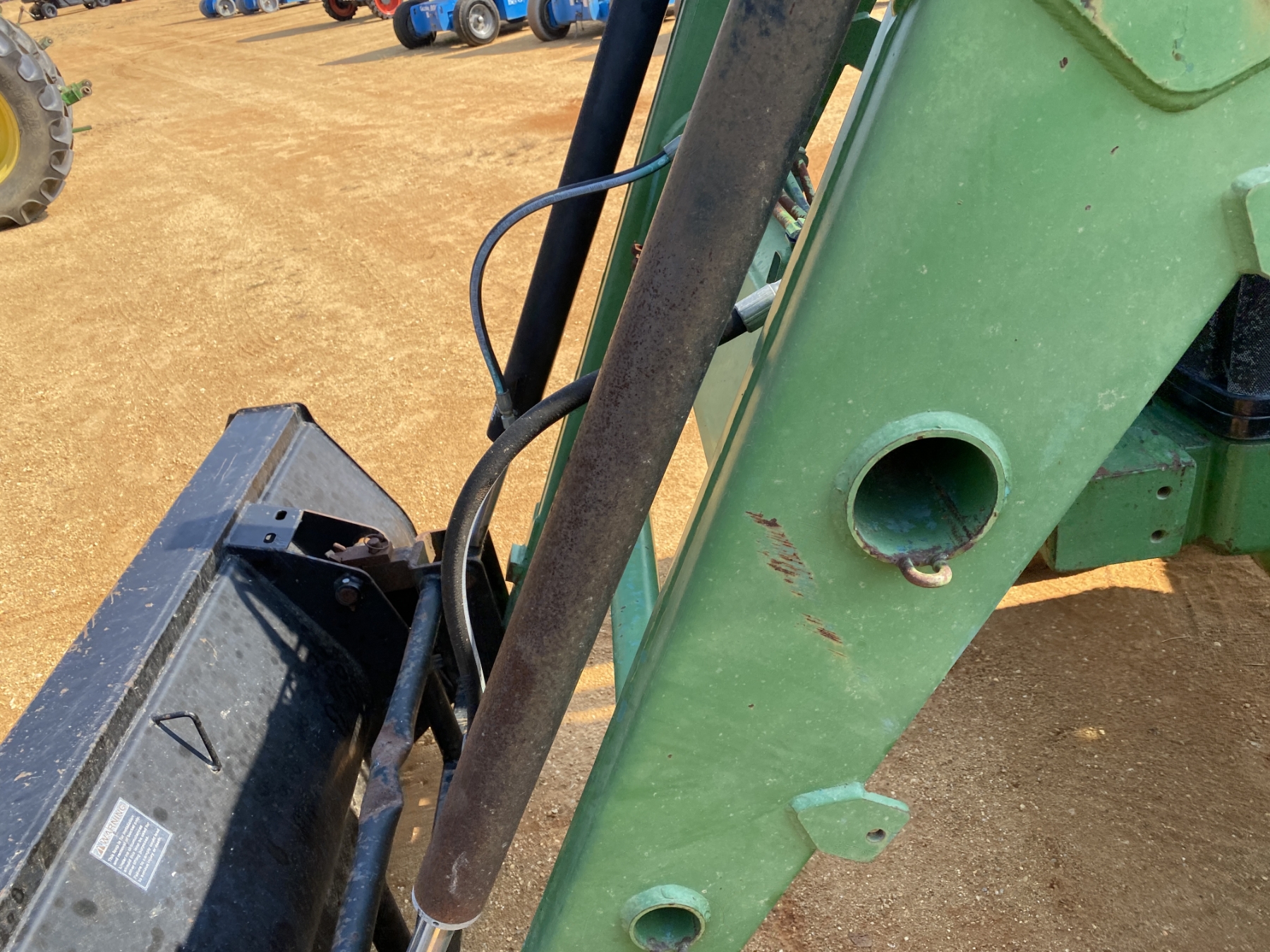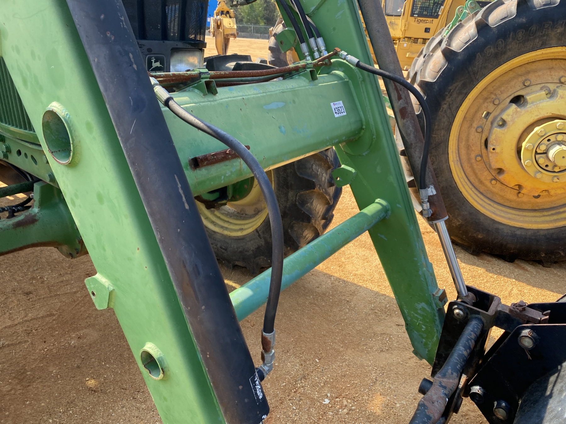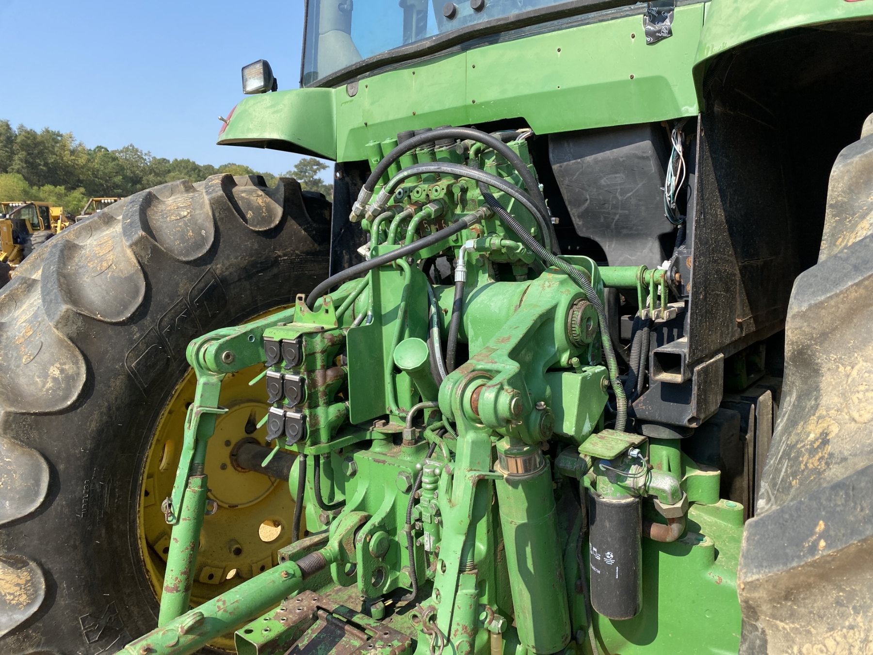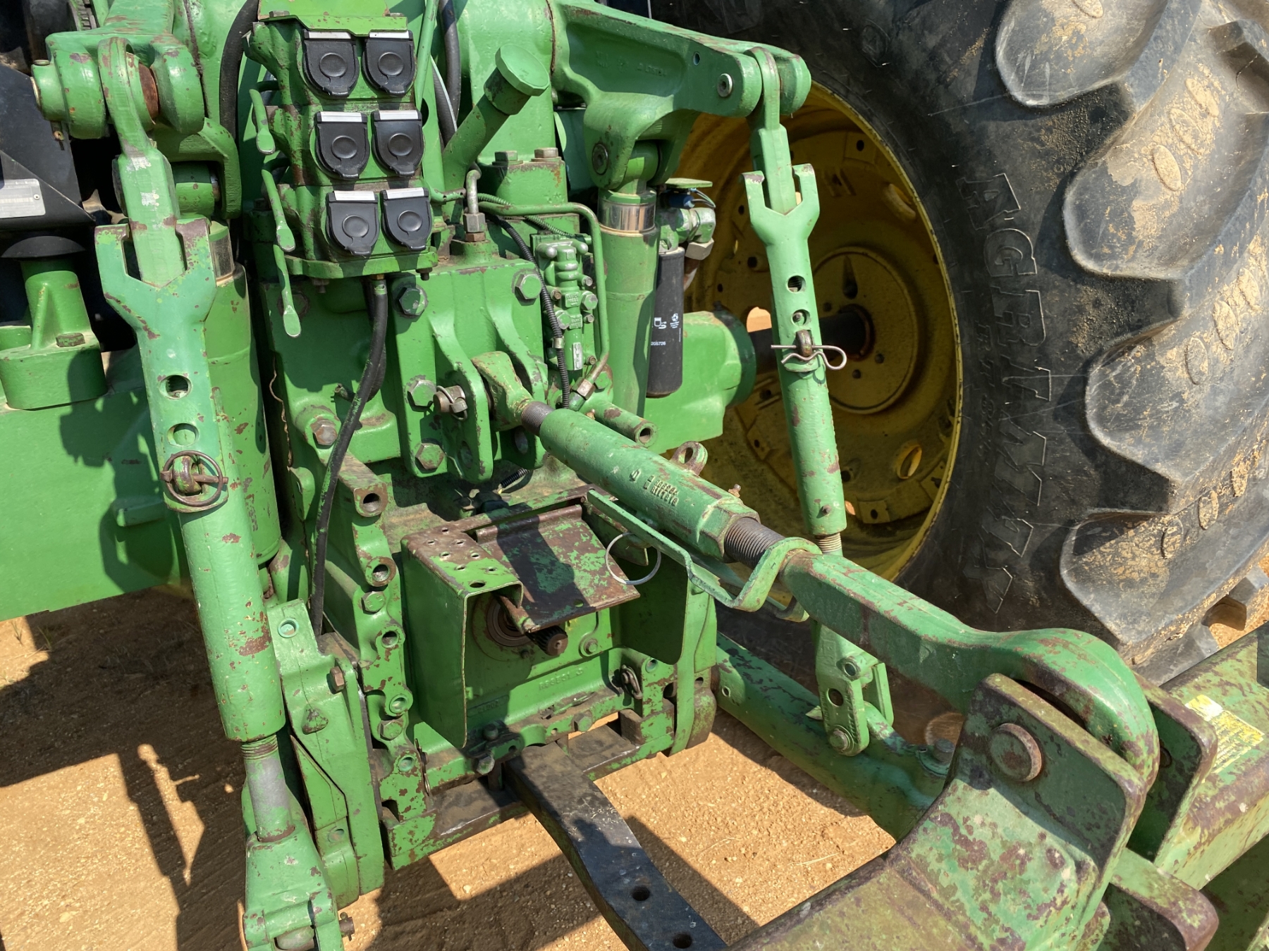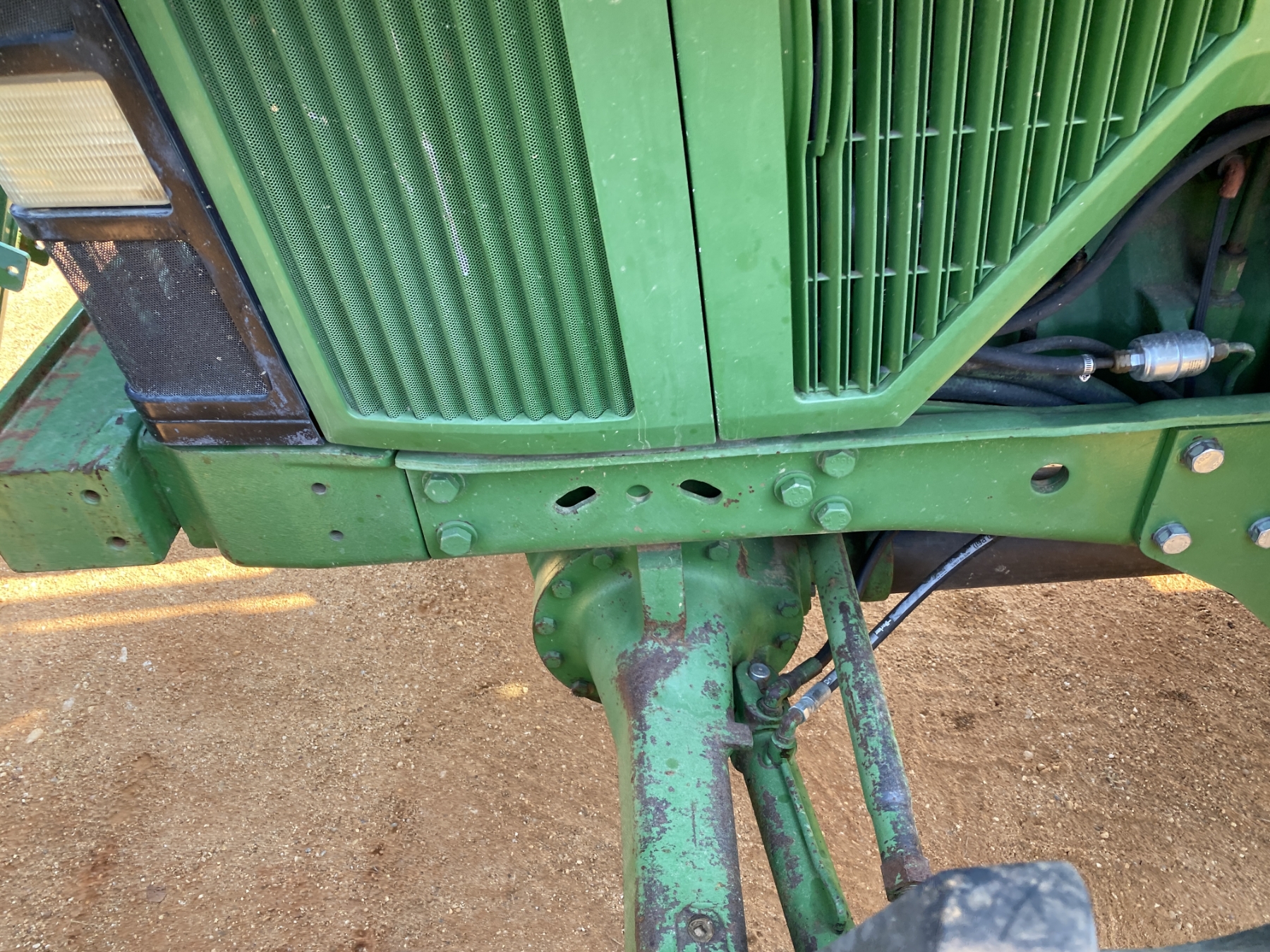 MFWD, (3) remotes, quick hitch, John Deere 7400 front loader attach, bucket, 20.8-42 rear tires, 14.9-30 front tires