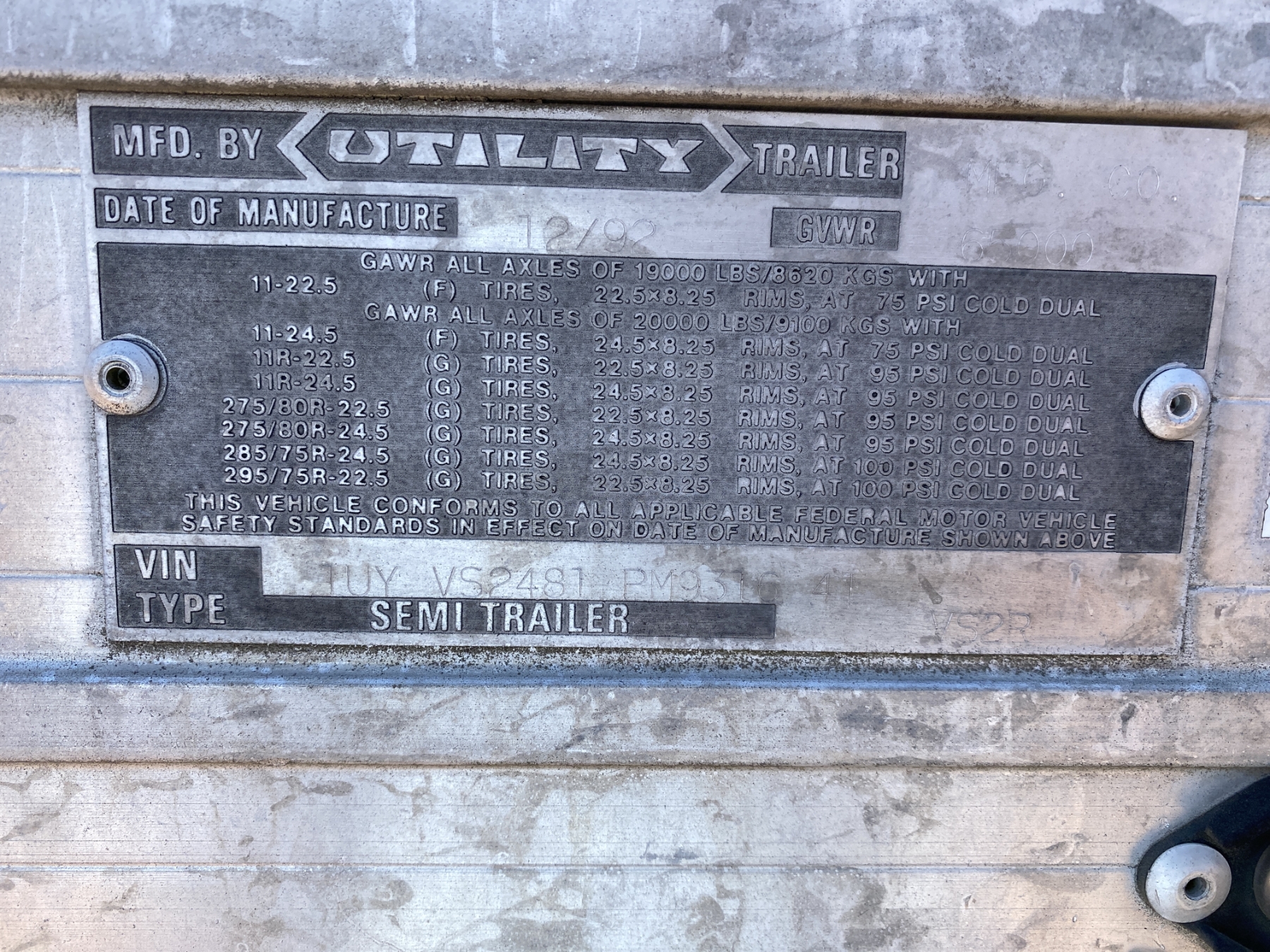 1993 UTILITY VS2R Storage Trailer