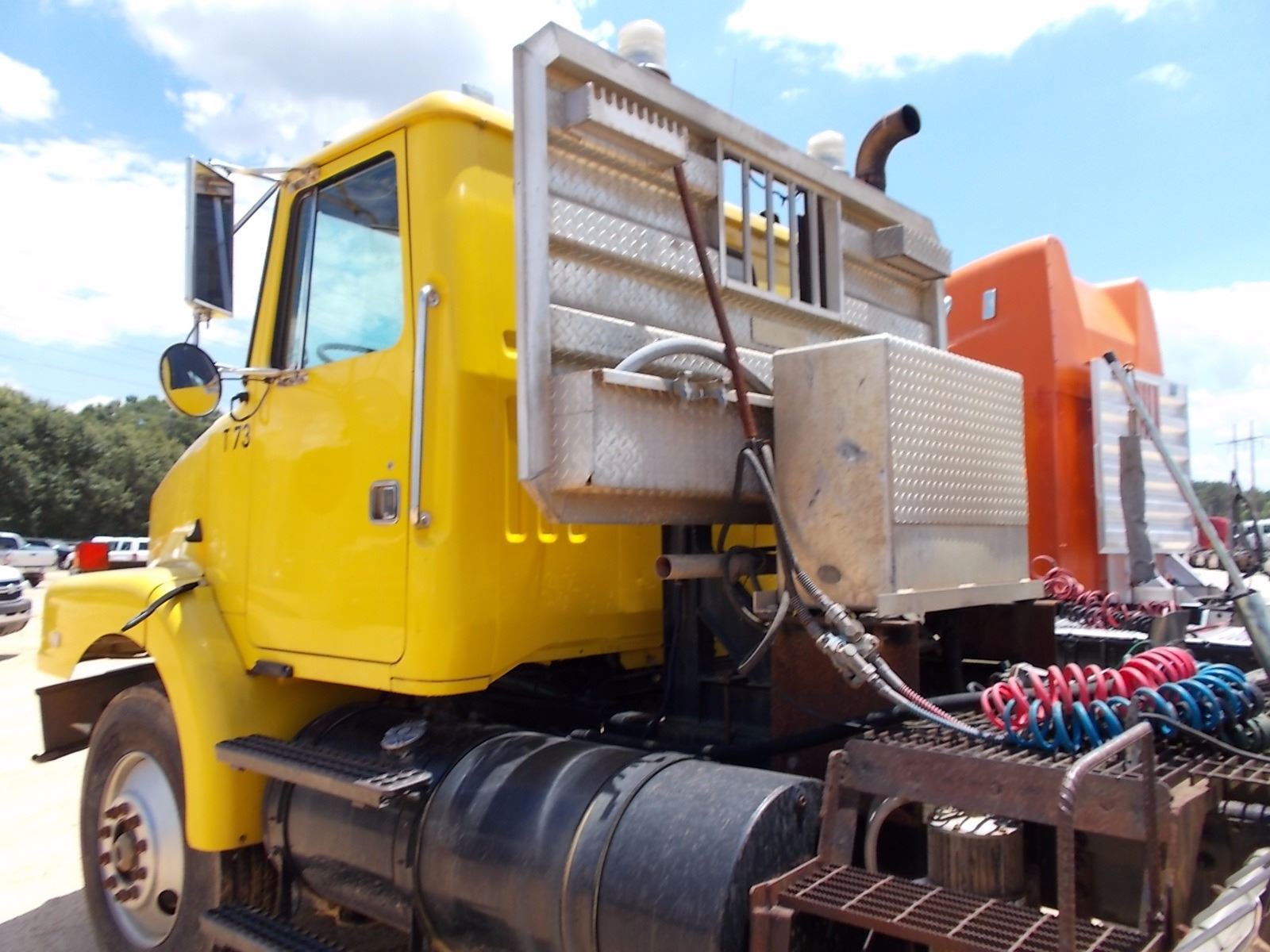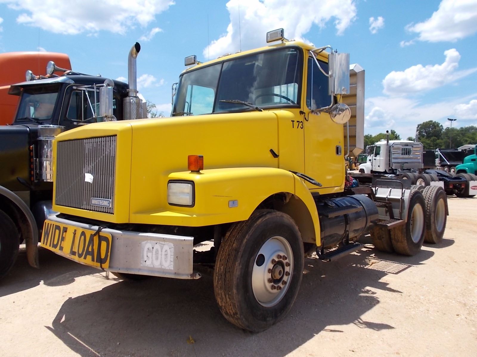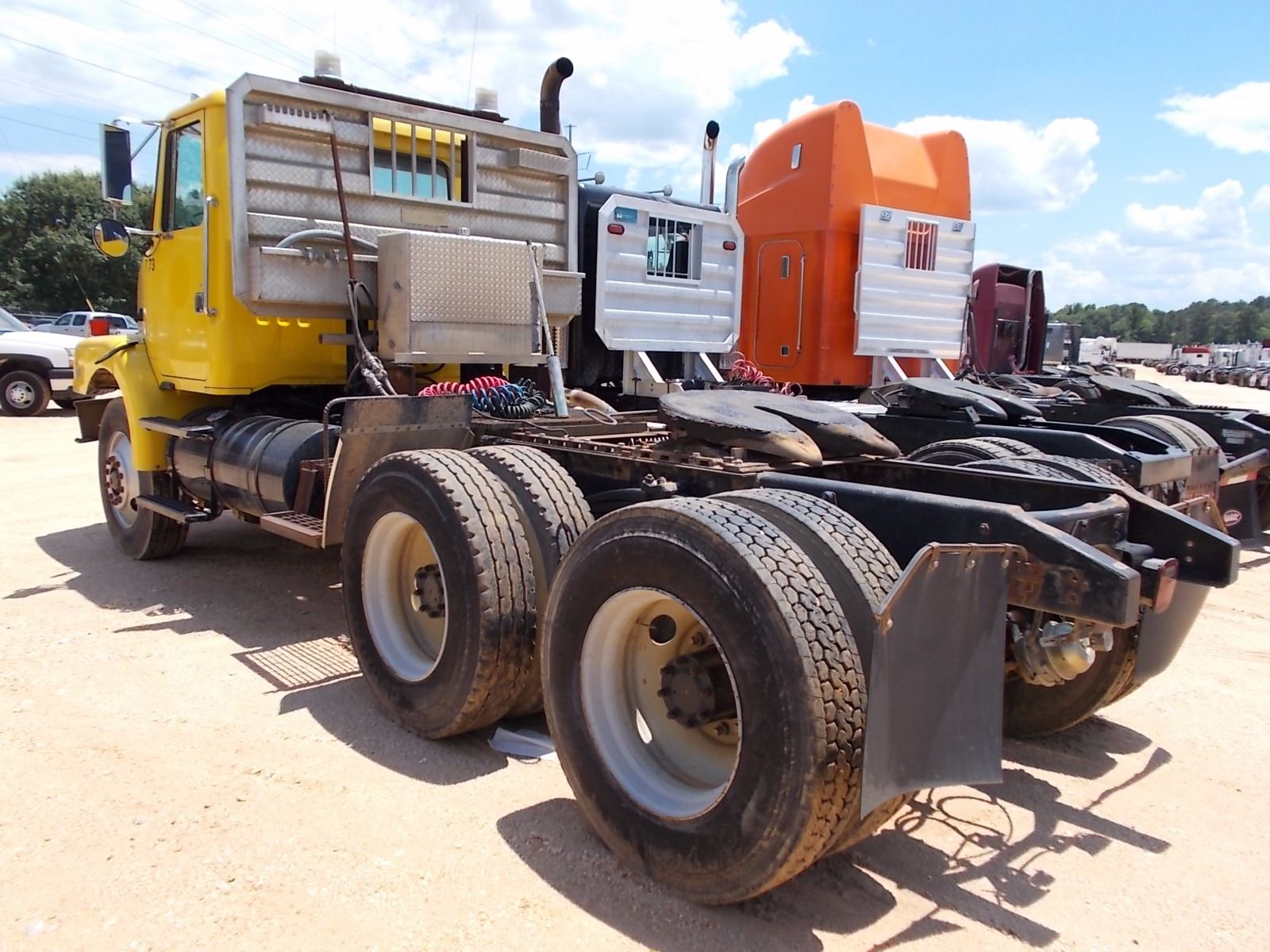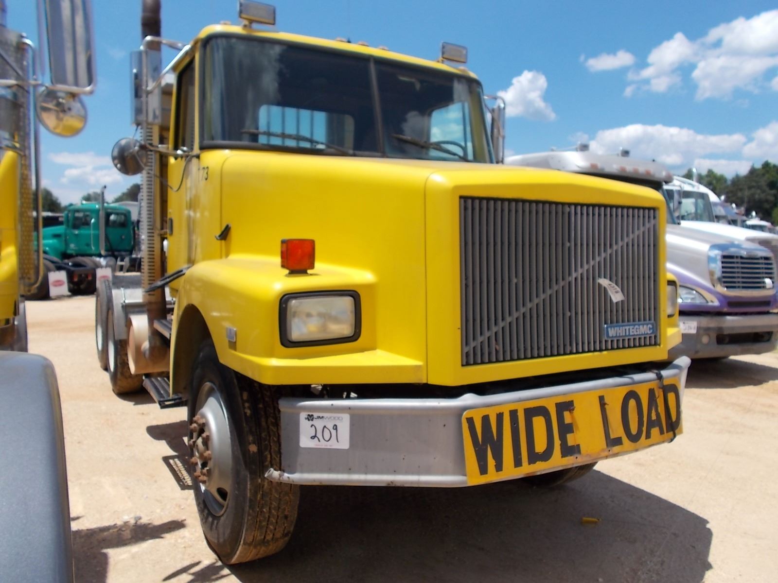 1993 WHITE GMC TRUCK TRACTOR, VIN/SN:4V2JCBLF9PR818269 - 360HP VOLVO VE12 DIESEL ENGINE, 9 SPD TRANS, 46K REARS, 14K FRONT, SPRING SUSP, ENGINE BRAKE, 180" W/B, WET KIT, ALUM HEADACHE RACK, 11R24.5 TIRES, STEEL DISC WHEELS, ODOMETER READING 192,164 MILES (COUNTY OWNED)