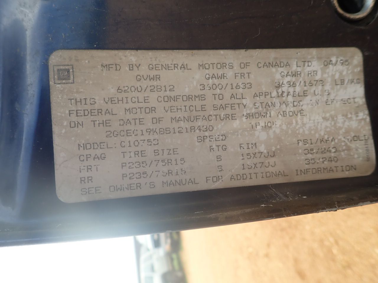 Vehicle ID Number: 2GCEC19K8S1218430