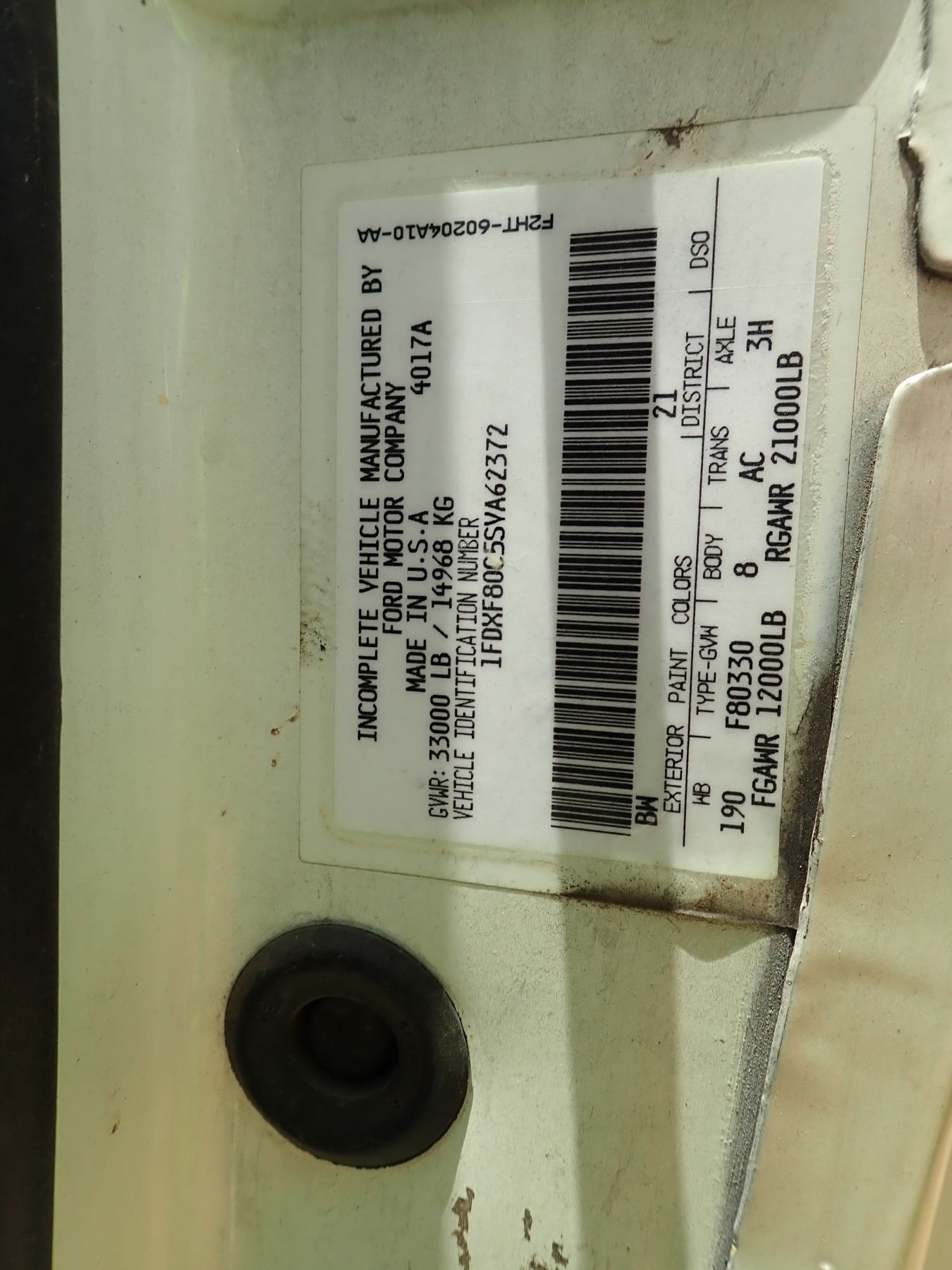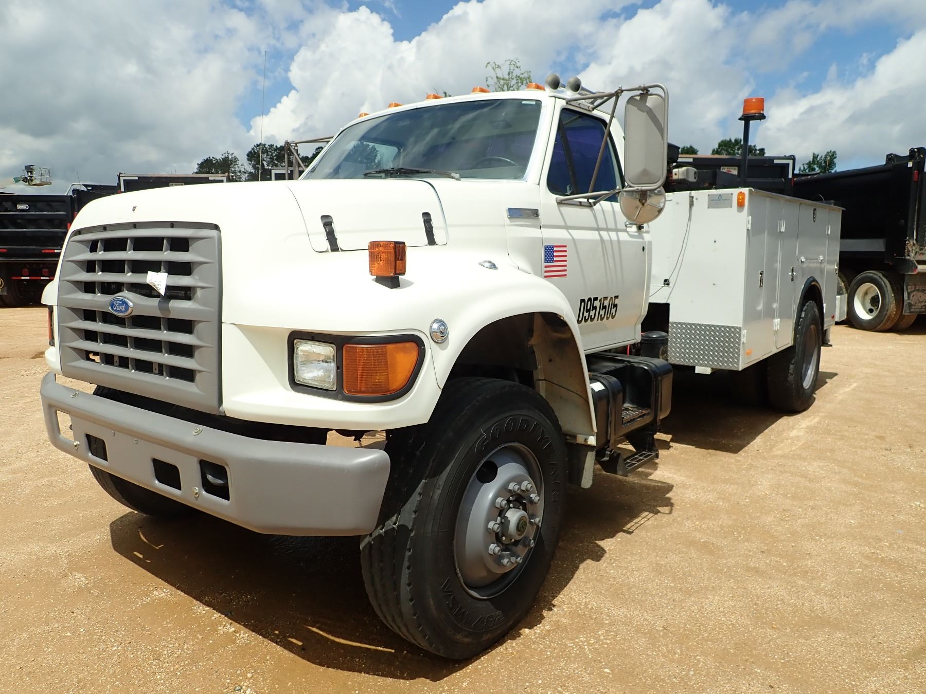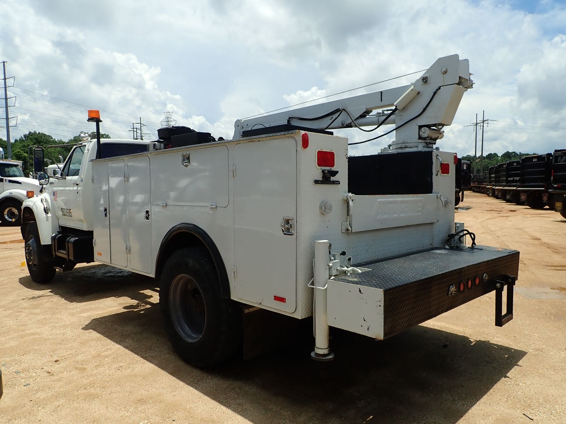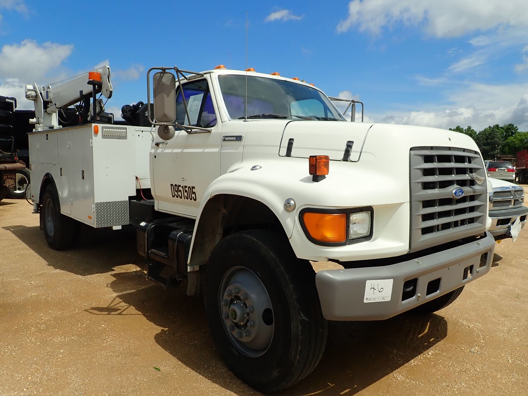 1995 FORD F SERIES MECHANICS TRUCK, VIN/SN:1FDXF80C5SVA62372 - S/A, 210 HP CUMMINS 5.9LTR ENGINE, A/T, GVWR 33,000#, AUTO CRANE SERVICE BODY, AIR COMPRESSOR, CRANE, OUTRIGGERS, 11R22.5 TIRES, METER READING 77,377 MILES (COUNTY OWNED)