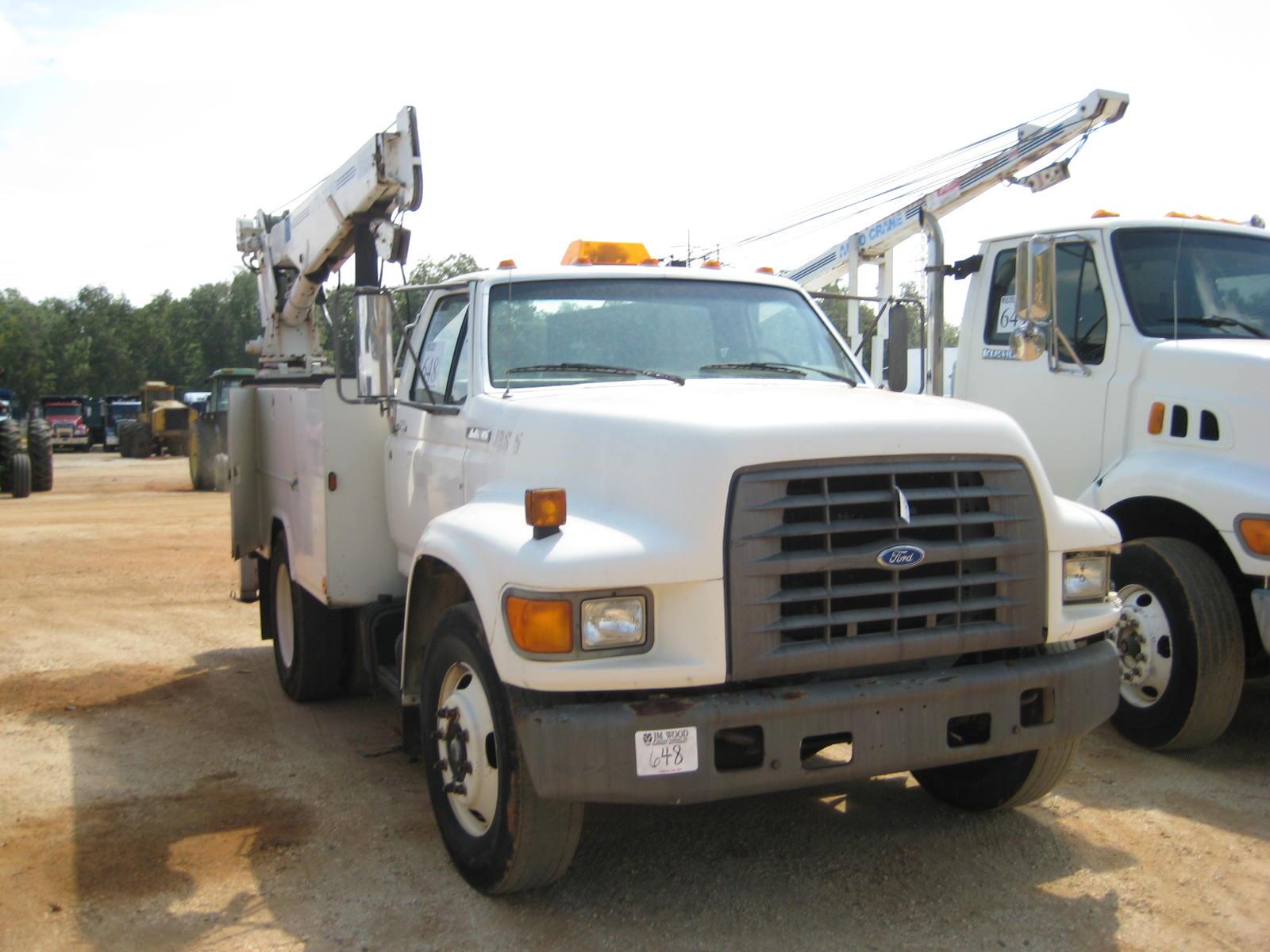 1995 FORD F SERIES S/A SERVICE TRUCK, S/N SVA03625, FORD DIESEL ENG, 5 SPD TRANS A/C, P/S, REAR SERVICE BODY, 8,000# AUTO CRANE, OUTRIGGERS