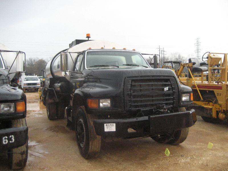 1995 FORD F800 S/A DISTRIBUTOR TRUCK, S/N A35684, DIESEL, 5-2 SPD, 21K REARS, 12K FRONT, P/S, ETNYRE 2,000 GAL SERIES 2000 TANK, FRONT ENG PTO, IN CAB CONTROLS