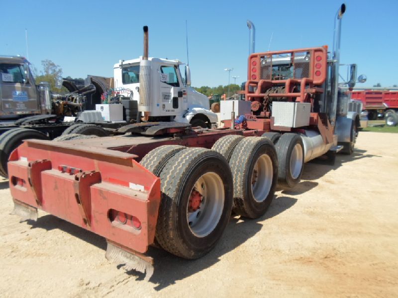 1995 PETERBILT 379 TRI-AXLE TRUCK TRACTOR, S/N 1XP5DR9X5SD373835, DETROIT DIESEL ENG, 18 SPD TRANS, 40K REARS, 12K FRONT, A/C, P/S, ENGINE BRAKE, HEAVY DUTY TULSA WINCH, TOOLBOXES, 11R24.5 TIRES ON ALUM DISC WHEELS