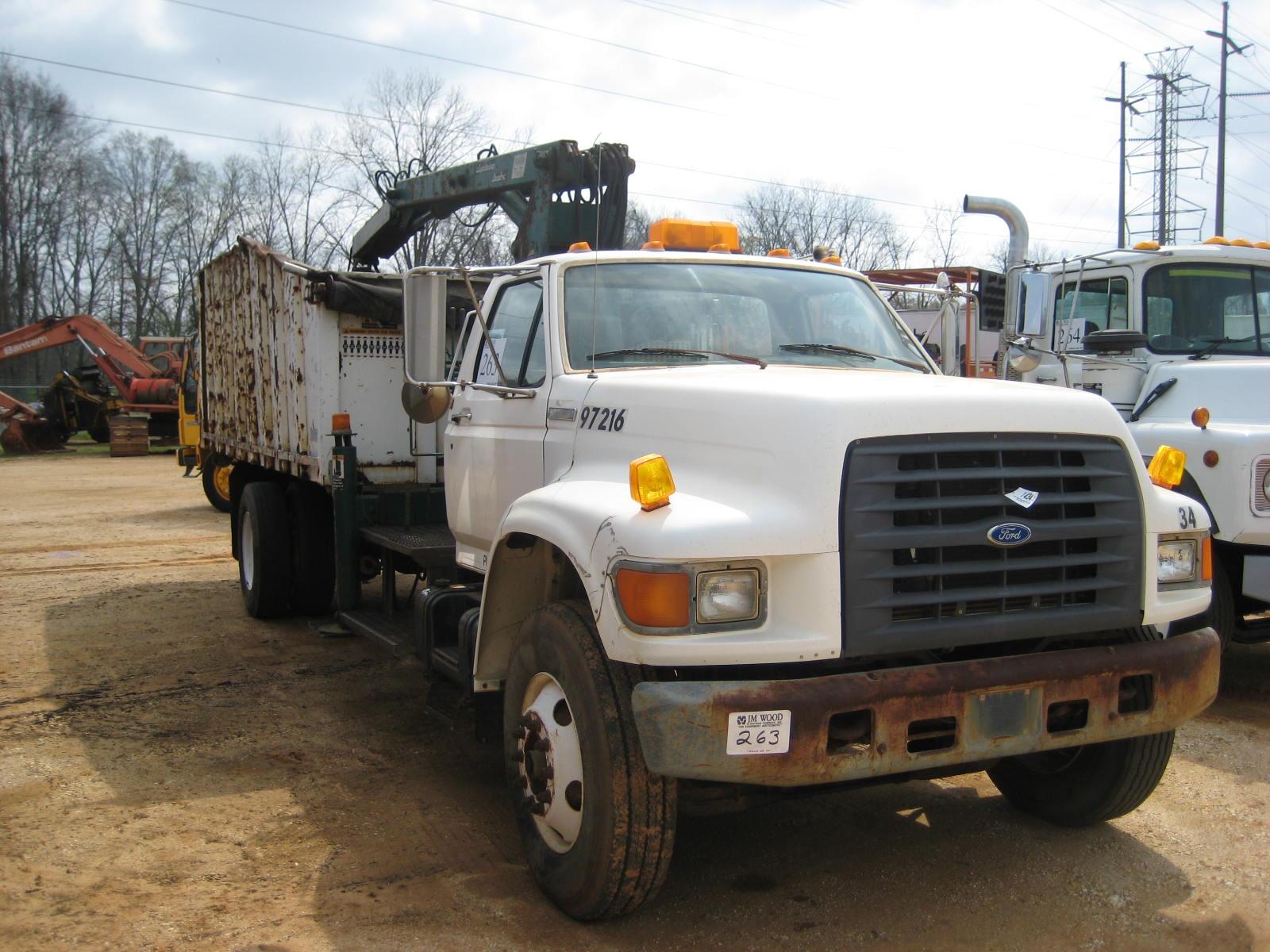 1997 FORD F SERIES S/A TRASH TRUCK, S/N A00741, FORD DIESEL ENG, A/T, 21K REARS 12K FRONT, P/S, A/C, PETERSON LIGHTNING KNUCKLEBOOM LOADER, 20 YD DUMP BODY, HYD OUTRIGGERS (COUNTY OWNED)