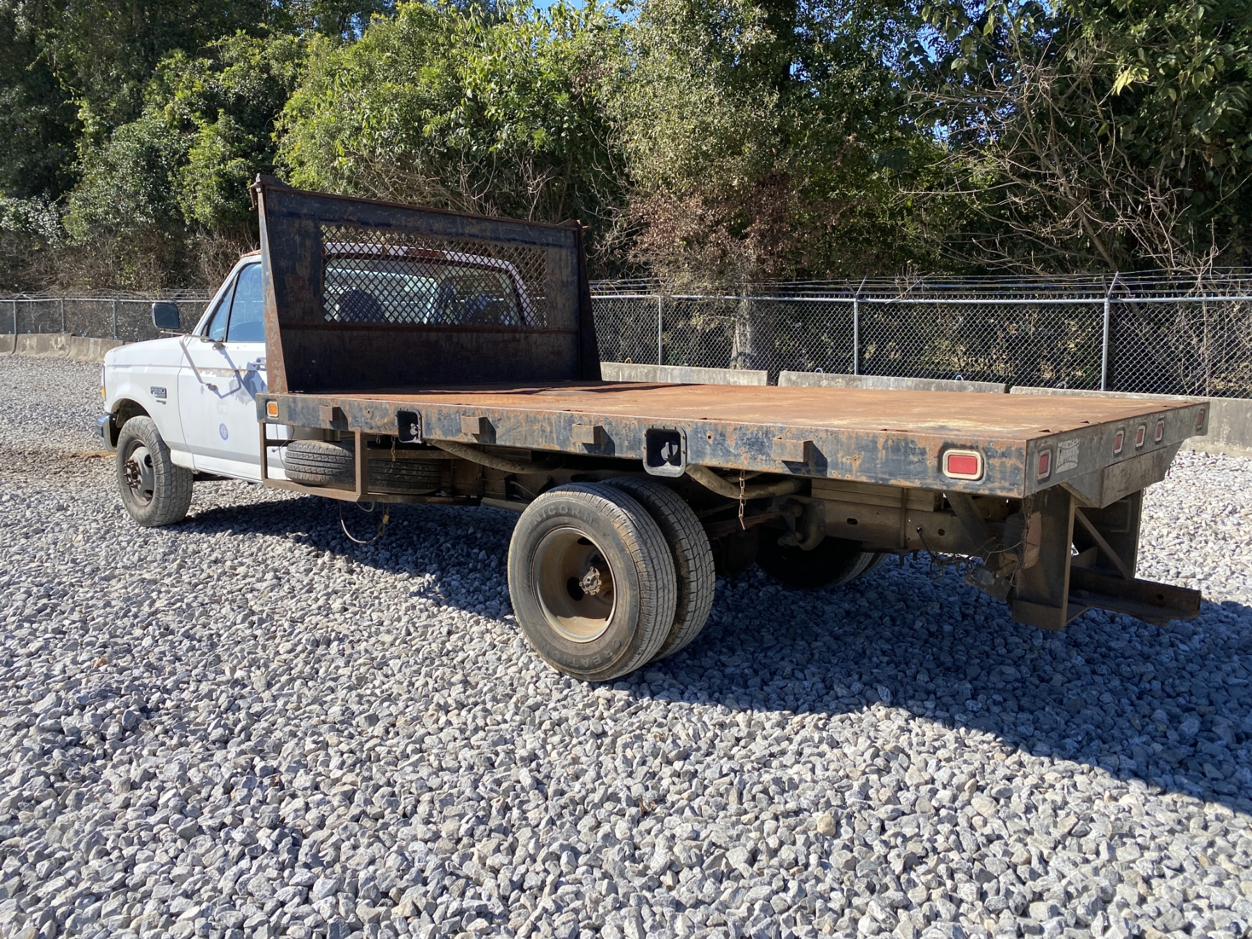 dually, Power Stroke diesel, 5 speed trans, 12' flatbed