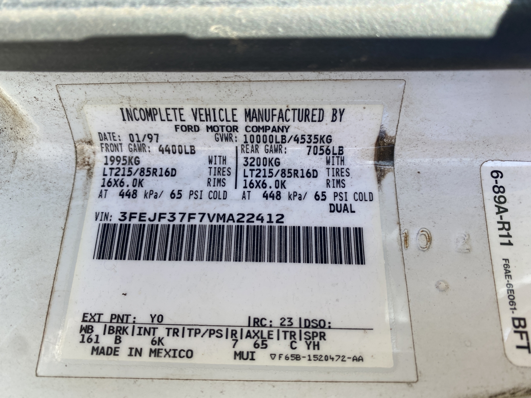 Vehicle ID Number: 3FEJF37F7VMA22412