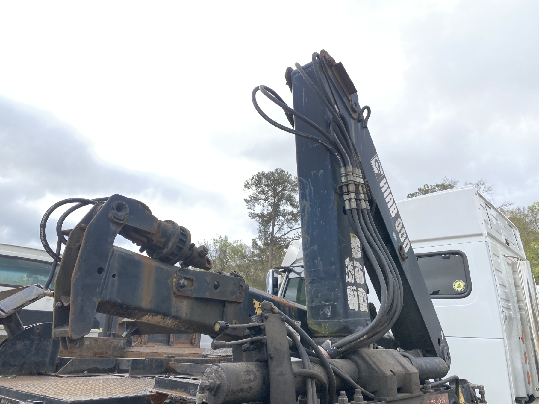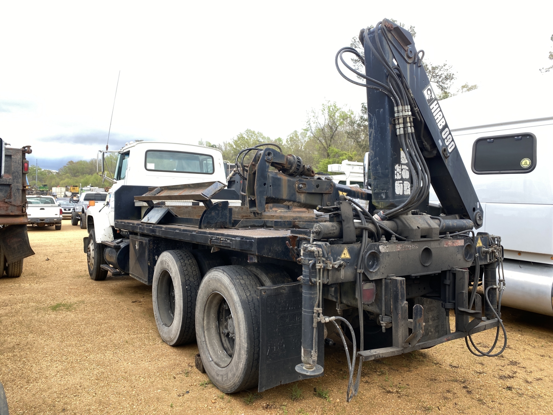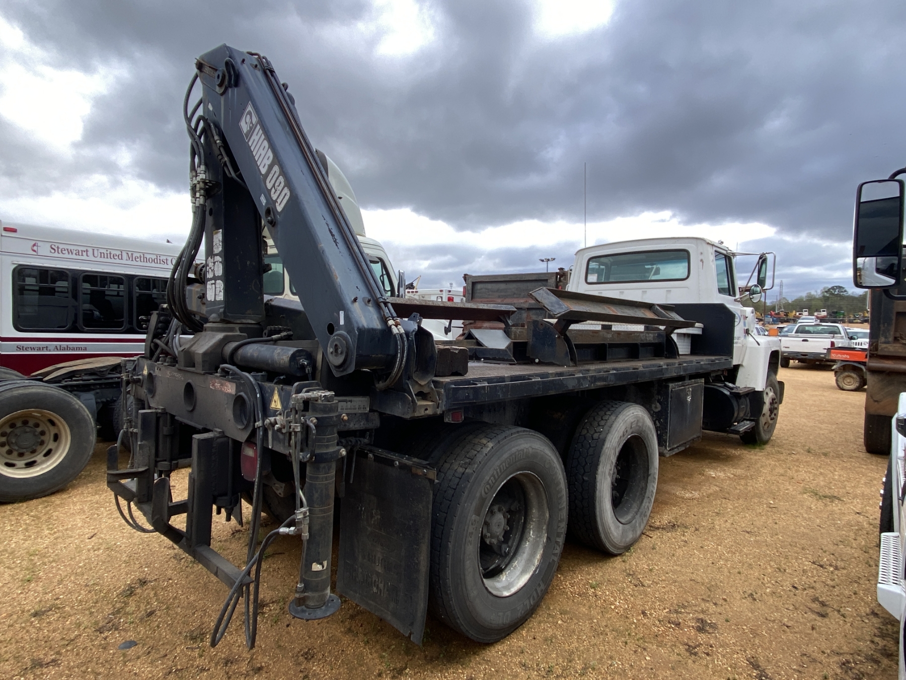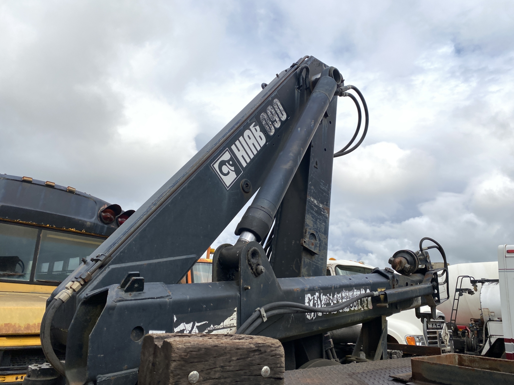 T/A, Cat 3306 engine, 10 speed trans, 15' flatbed, Hiab 090 rear mtd. crane, (Inoperable) (Engine Issue)