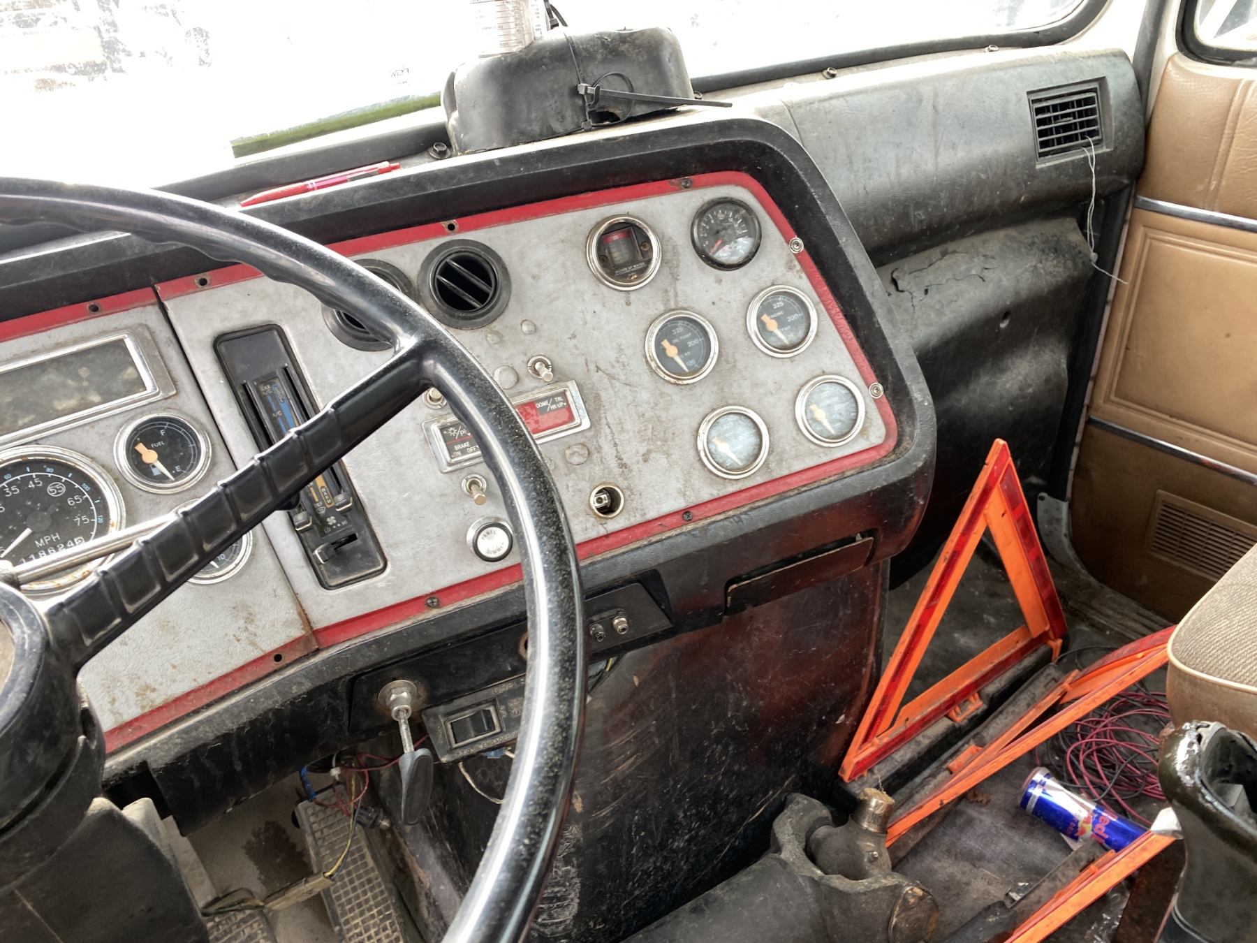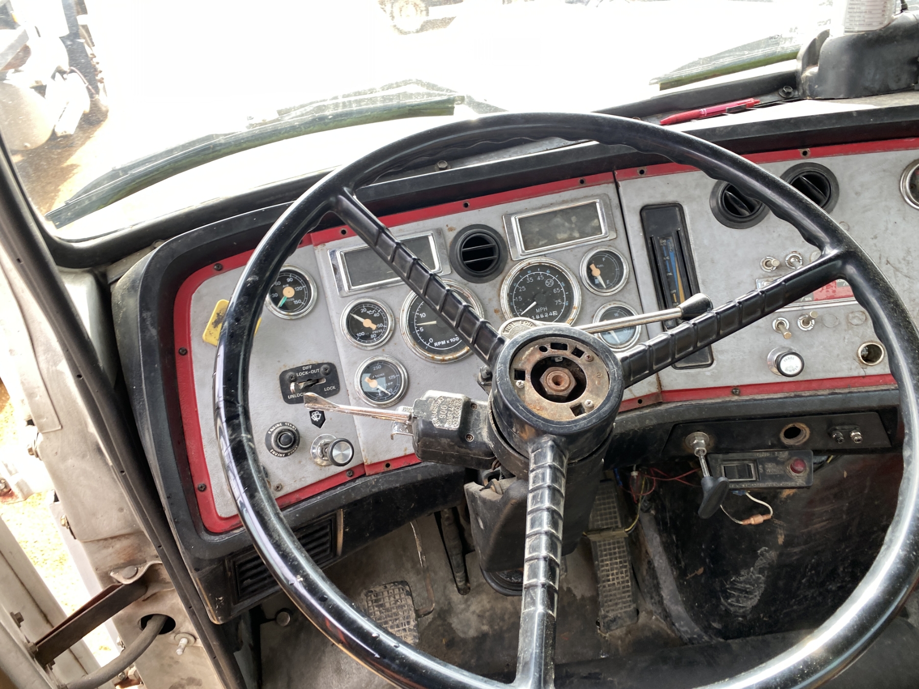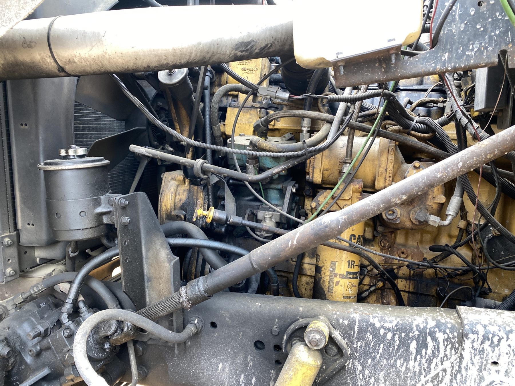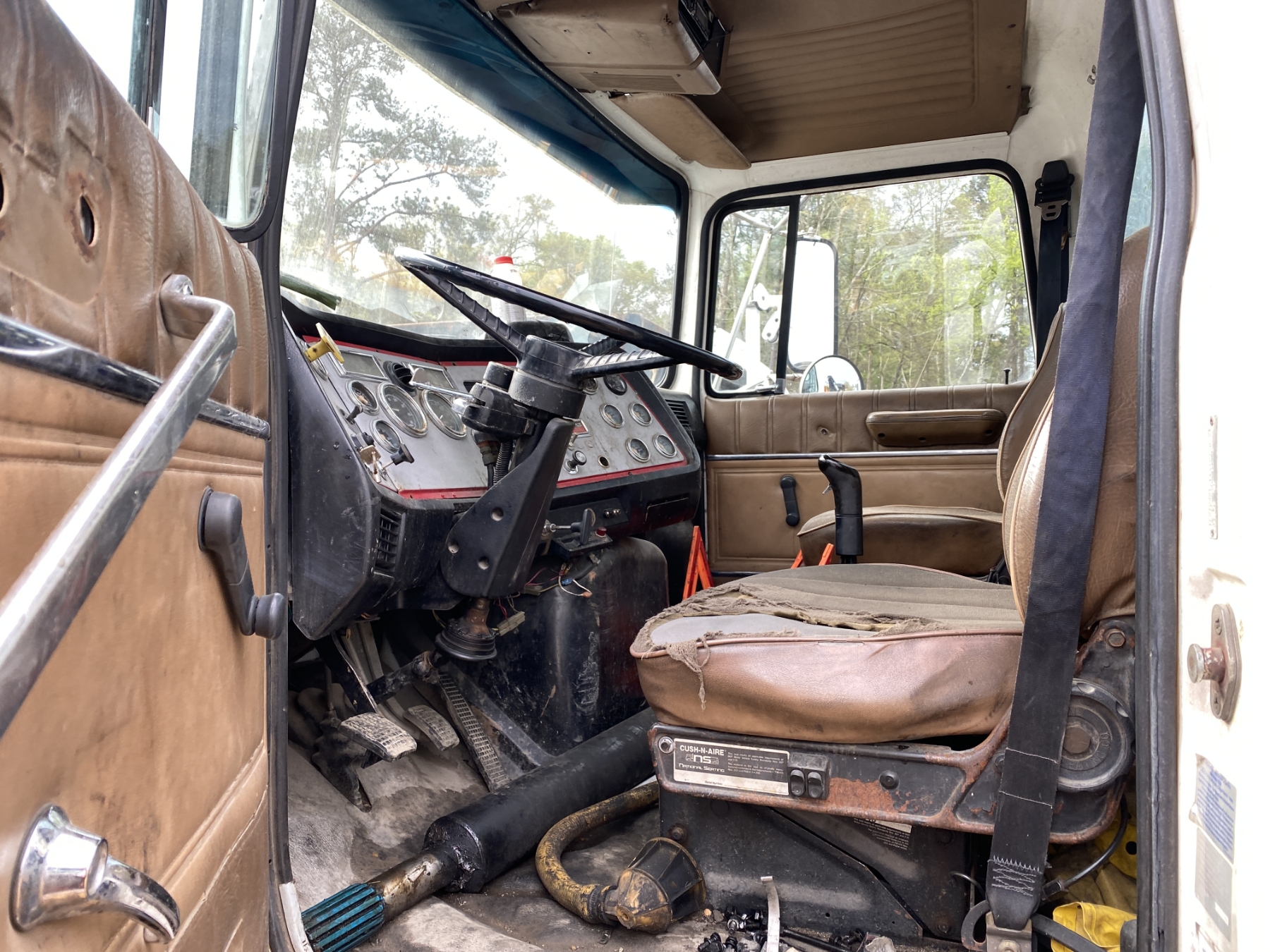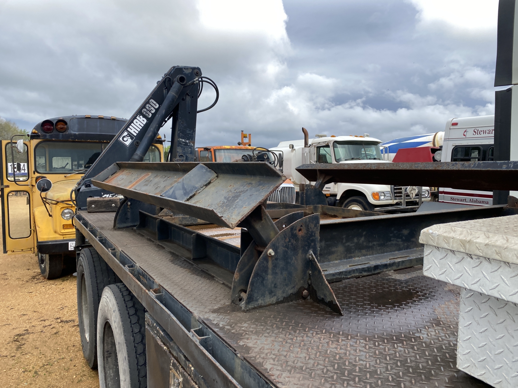 T/A, Cat 3306 engine, 10 speed trans, 15' flatbed, Hiab 090 rear mtd. crane, (Inoperable) (Engine Issue)