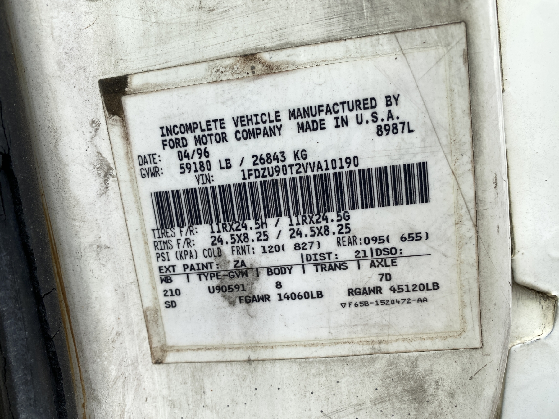 Vehicle ID Number: 1FDZU90T2VVA10190