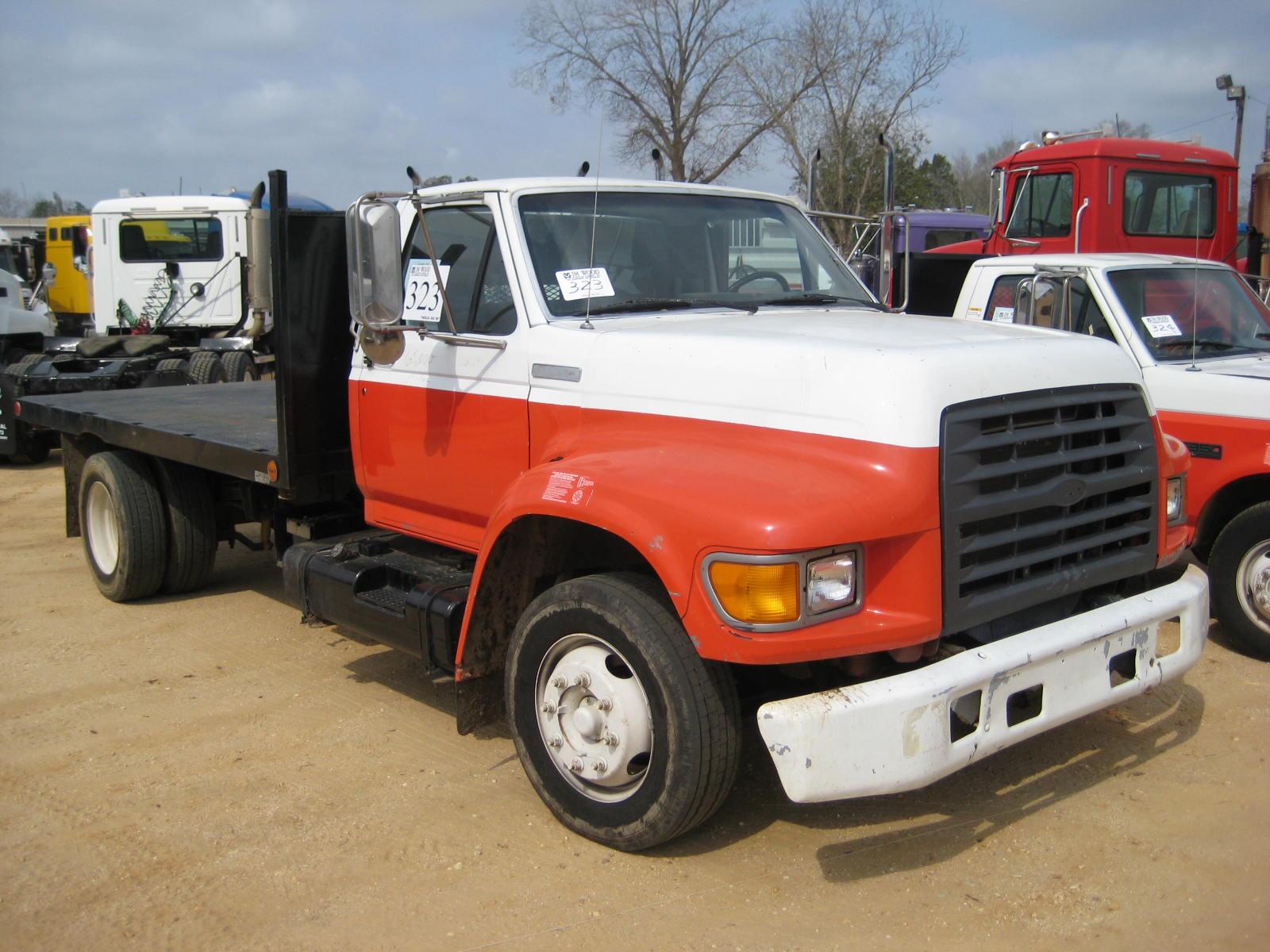 1997 FORD S/A FLATBED TRUCK TRACTOR, S/N SVA24757, FORD GAS ENG, A/T, A/C, P/S 15' FLATBED BODY