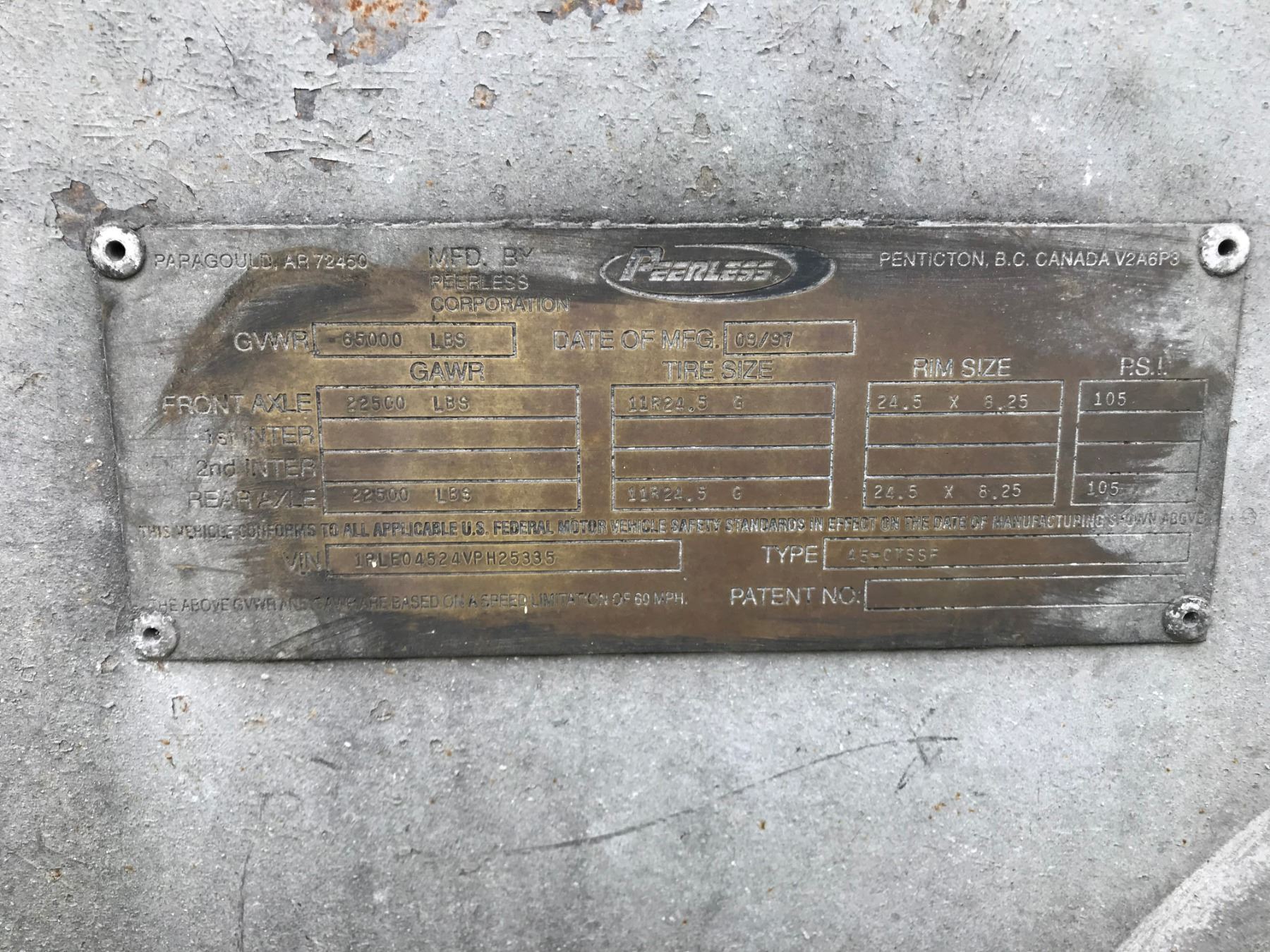 1997 PEERLESS 45-CTSFS CHIP VAN; VIN/SN:1PLE04524VPH25335 T/A, OPEN TOP, WALKING FLOOR, 45' LENGTH, TARP, 285/75R24.5 TIRES