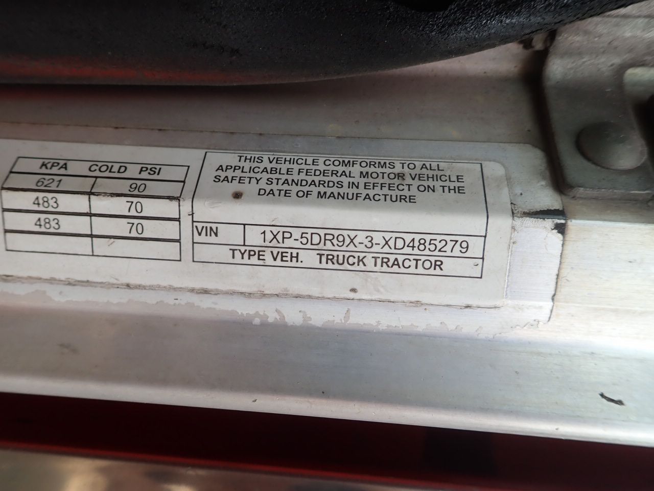 Vehicle ID Number: 1XP5DR9X3XD485279