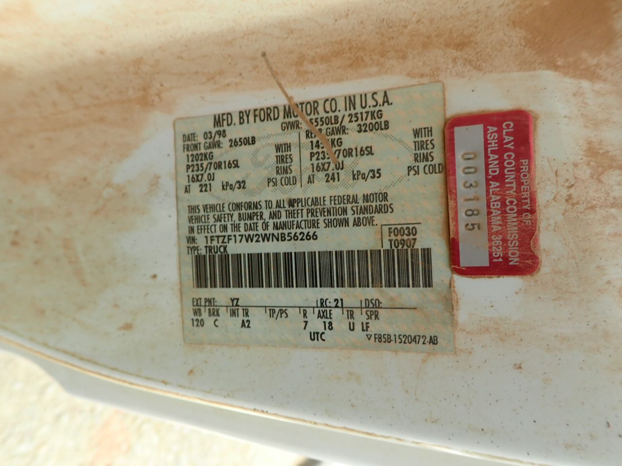 Vehicle ID Number: 1FTZF17W2WNB56266