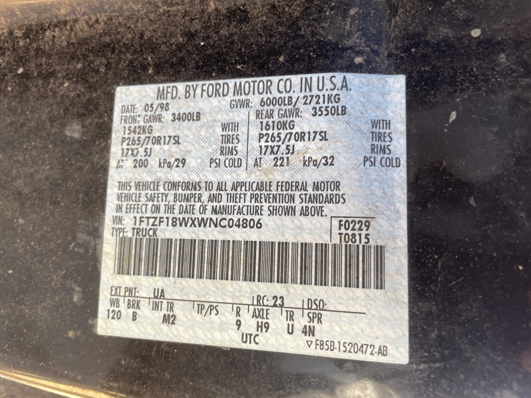 Vehicle ID Number: 1FTZF18WXWNC04806