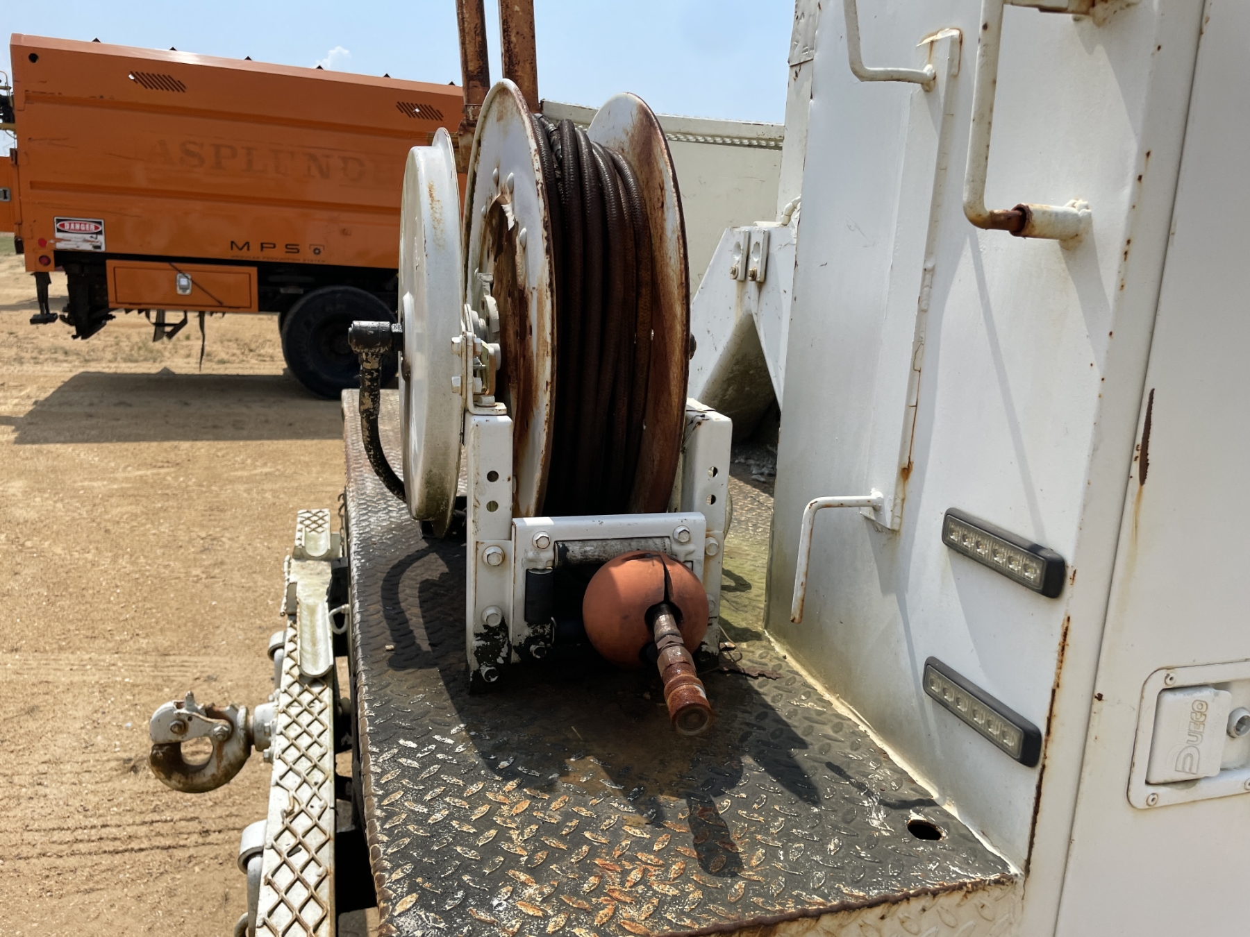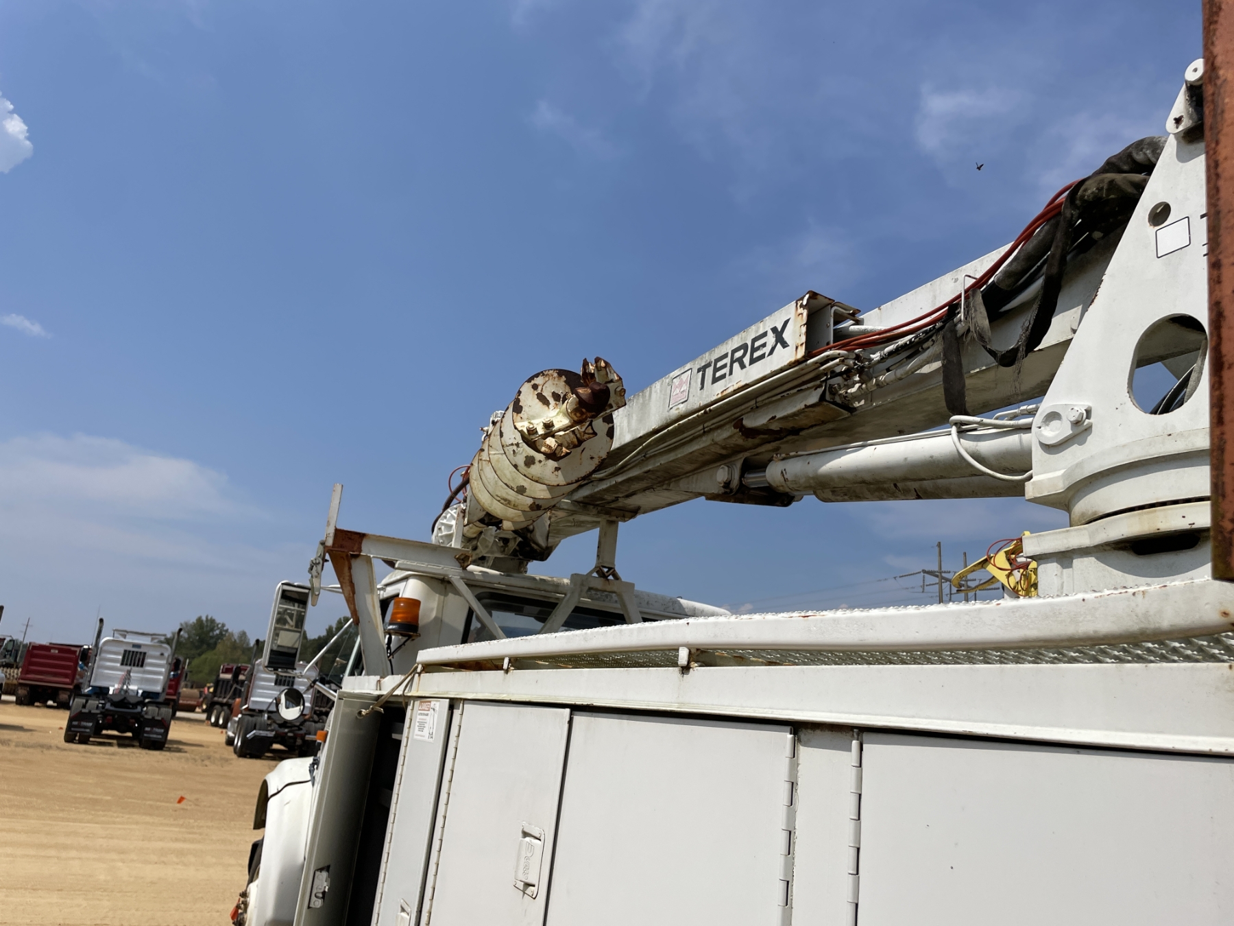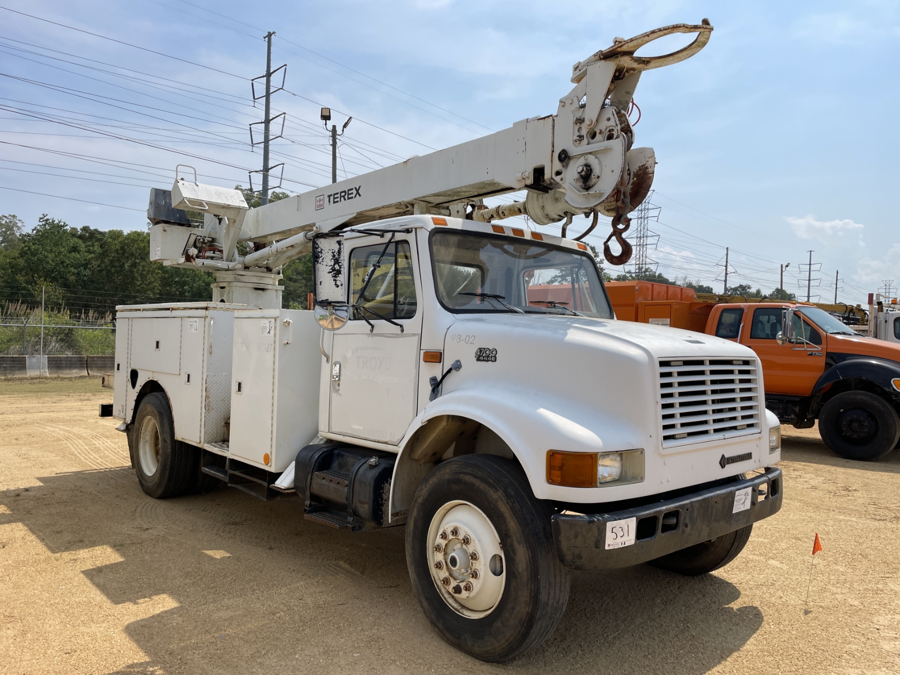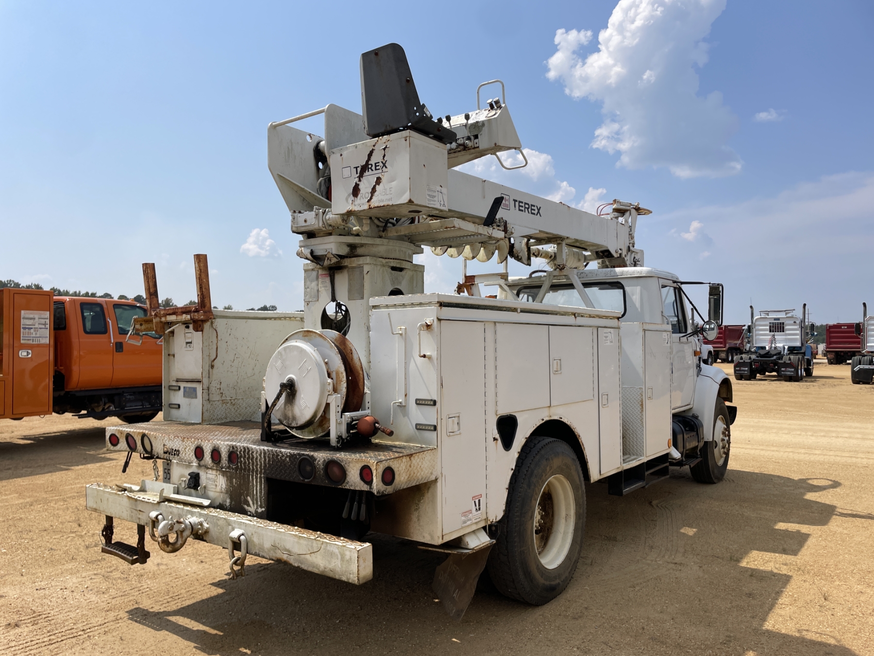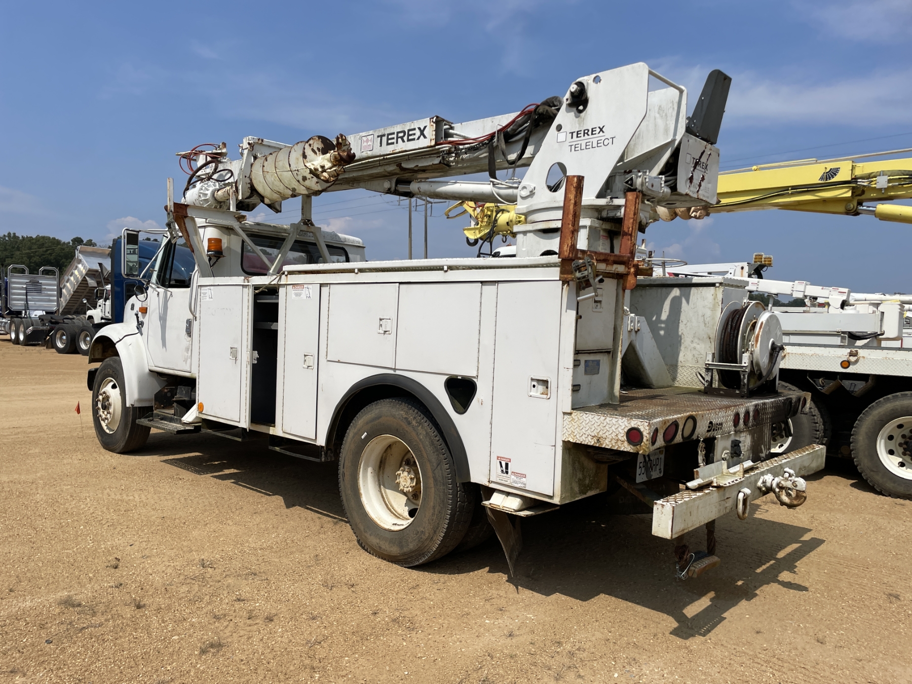 S/A, International T444E, 6 speed trans, Dueco service body, Terex Commander 4045 digger derrick