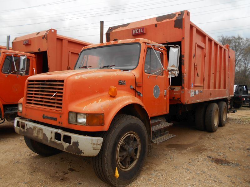 1998 INTERNATIONAL 4900 T/A GARBAGE TRUCK, S/N 1HTSHAAT5WH575319, DT466E IHC ENG, ALLISON AUTO TRANS, 40K REARS, 16K FRONT, HEIL GARBAGE BODY, REAR LOAD, 2 TIPPER, 11R22.5 REAR TIRES, STEEL DISC WHEELS, 315/80R22.5 FRONT TIRES, ODOMETER READING 127,658 MILES (CITY OWNED)