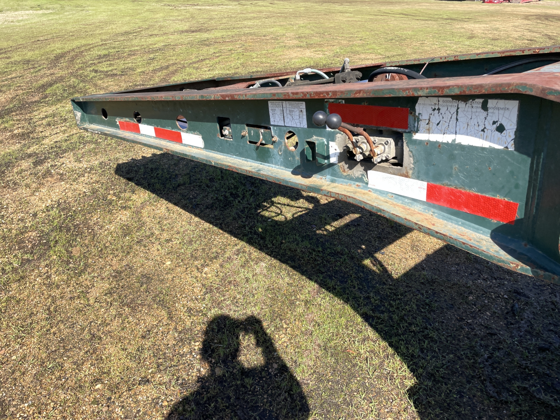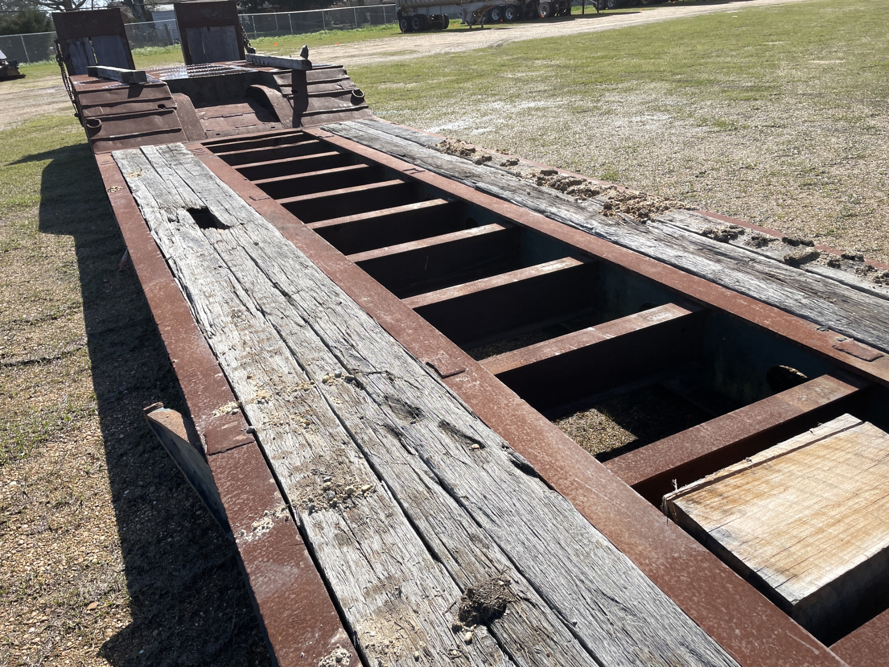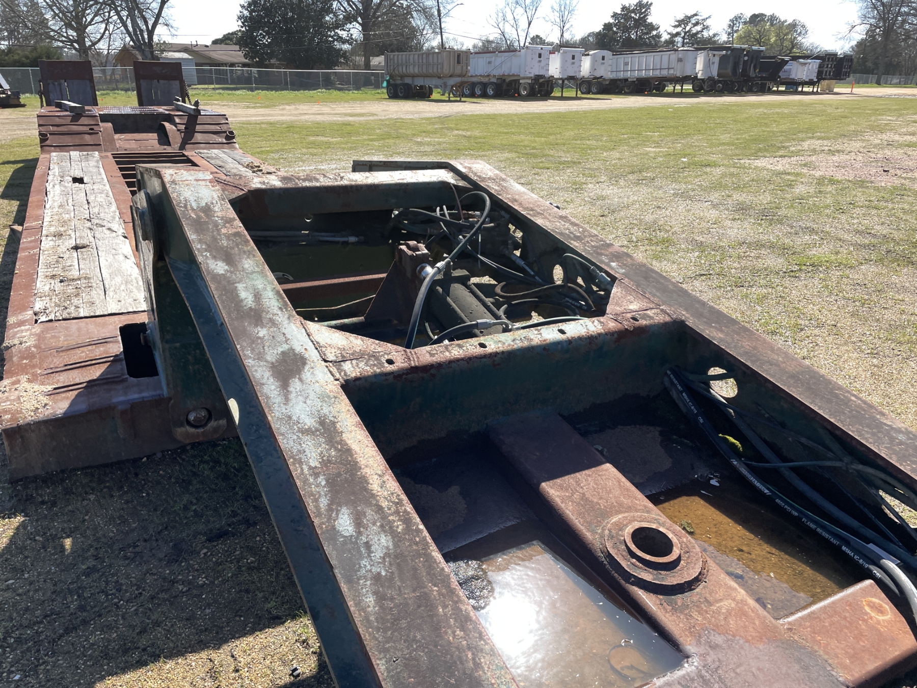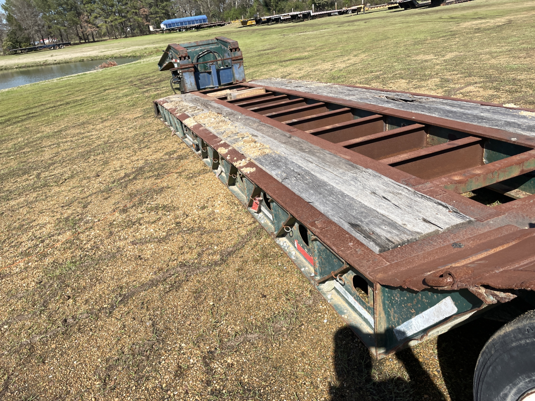 Tri Axle, RGN, NGB, 23' well, 102" width, covered wheel wells, dovetail, hyd ramps, air ride, 255/70R22.5 tires