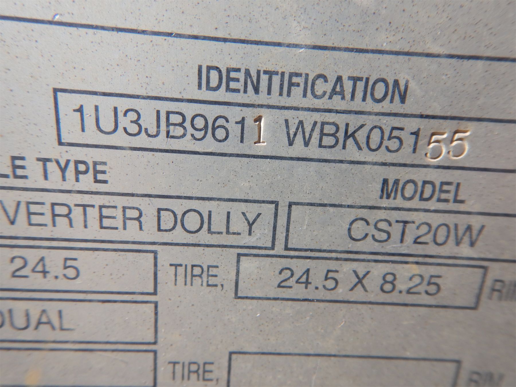 S/A dual, GVWR 20,000 lbs, 285/75R24.5 tires (NO BRAKES)