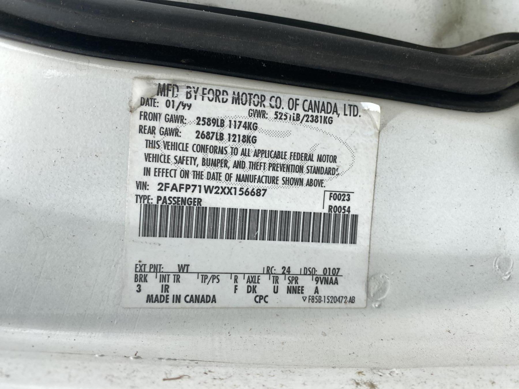 Vehicle ID Number: 2FAFP71W2XX156687