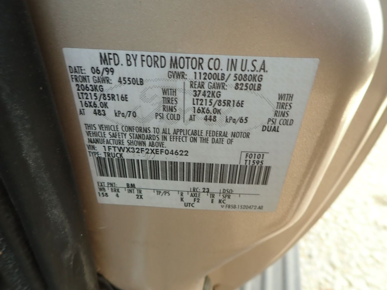 Vehicle ID Number: 1FTWX32F2XEF04622