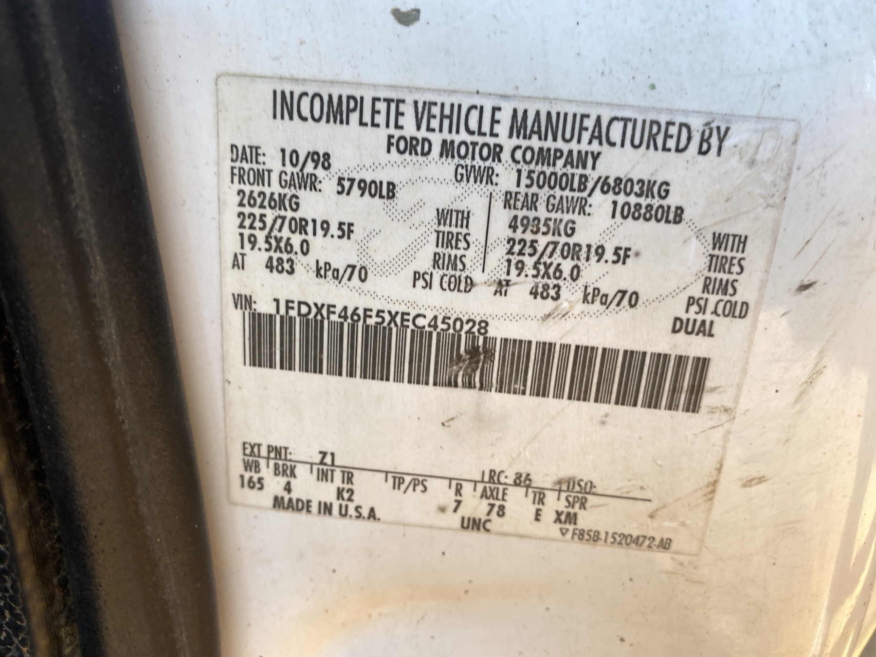 Vehicle ID Number: 1FDXF46F5XEC45028