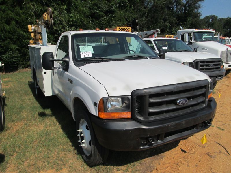 1999 FORD F550 S/A MECHANICS TRUCK, S/N 1FDAF56F9XEB59684, GAS ENG, 5 SPD TRANS, A/C, P/S, TOOL BODY, AIR COMP, IMT CRANE, VICE, OUTRIGGERS, ODOMETER READSING 238,687 MI